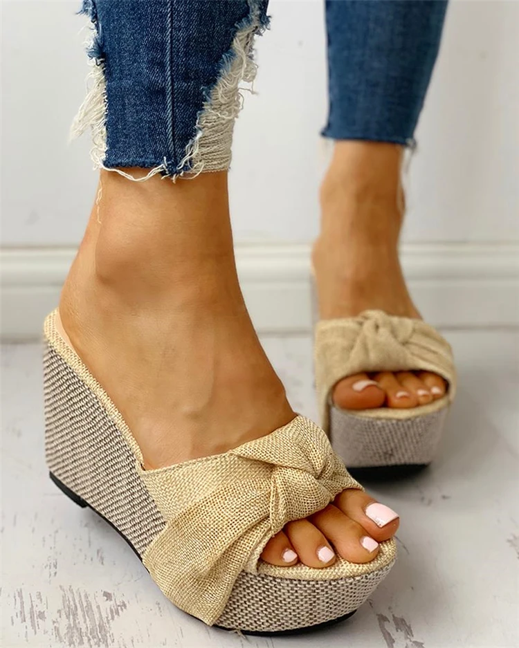 Сандалии женские из денима, босоножки на платформе, высокий каблук, открытый носок, бант, летняя повседневная модная пляжная обувь