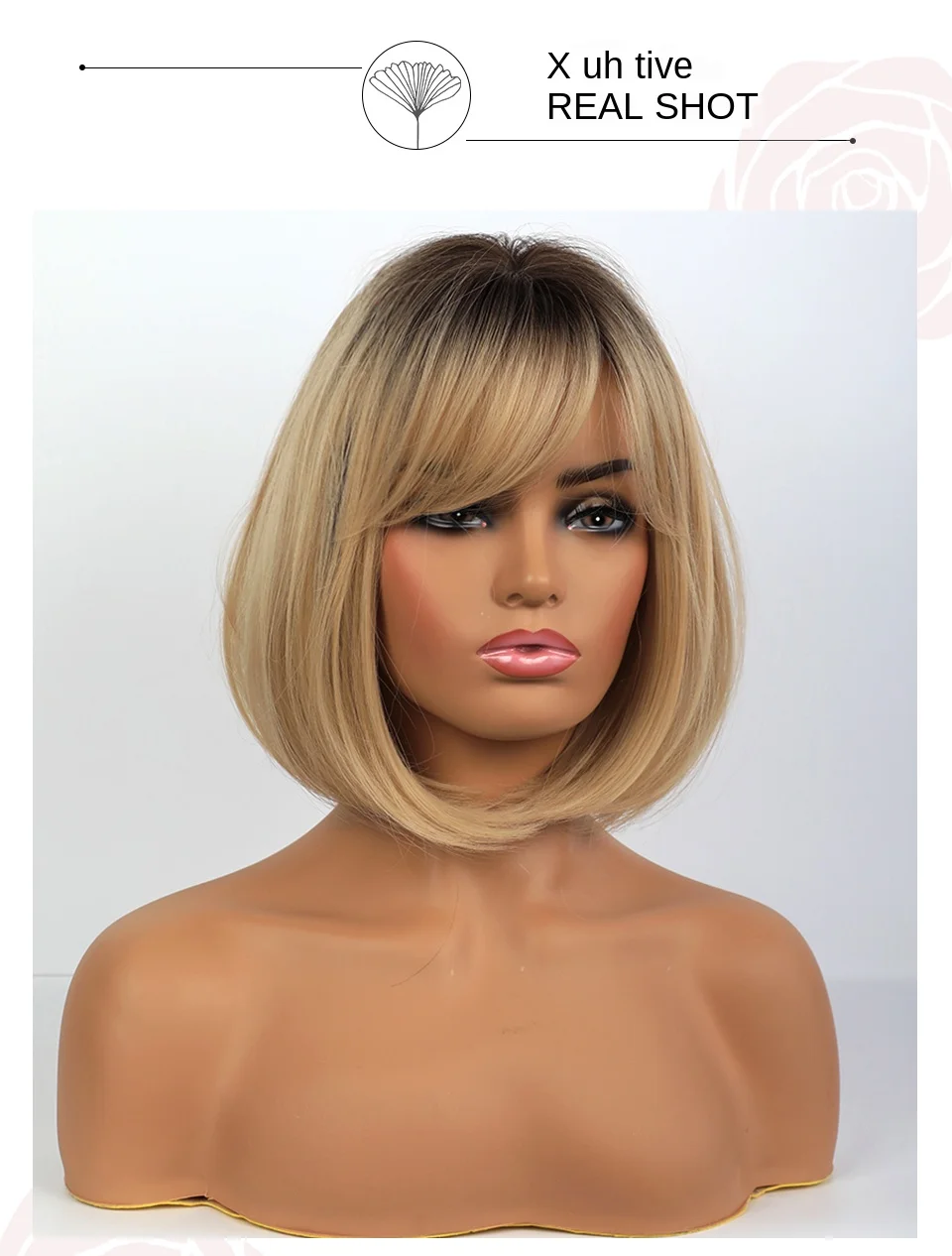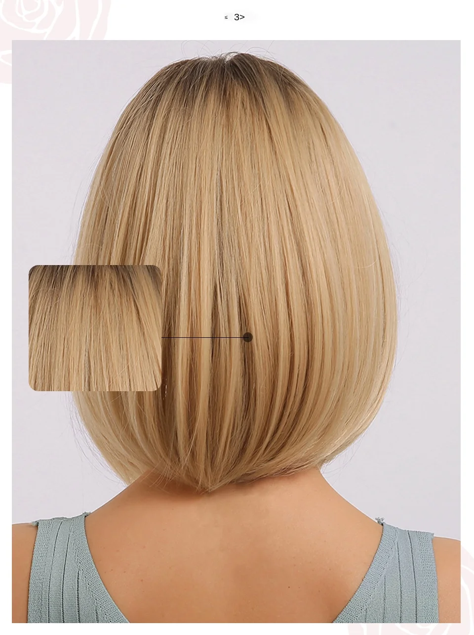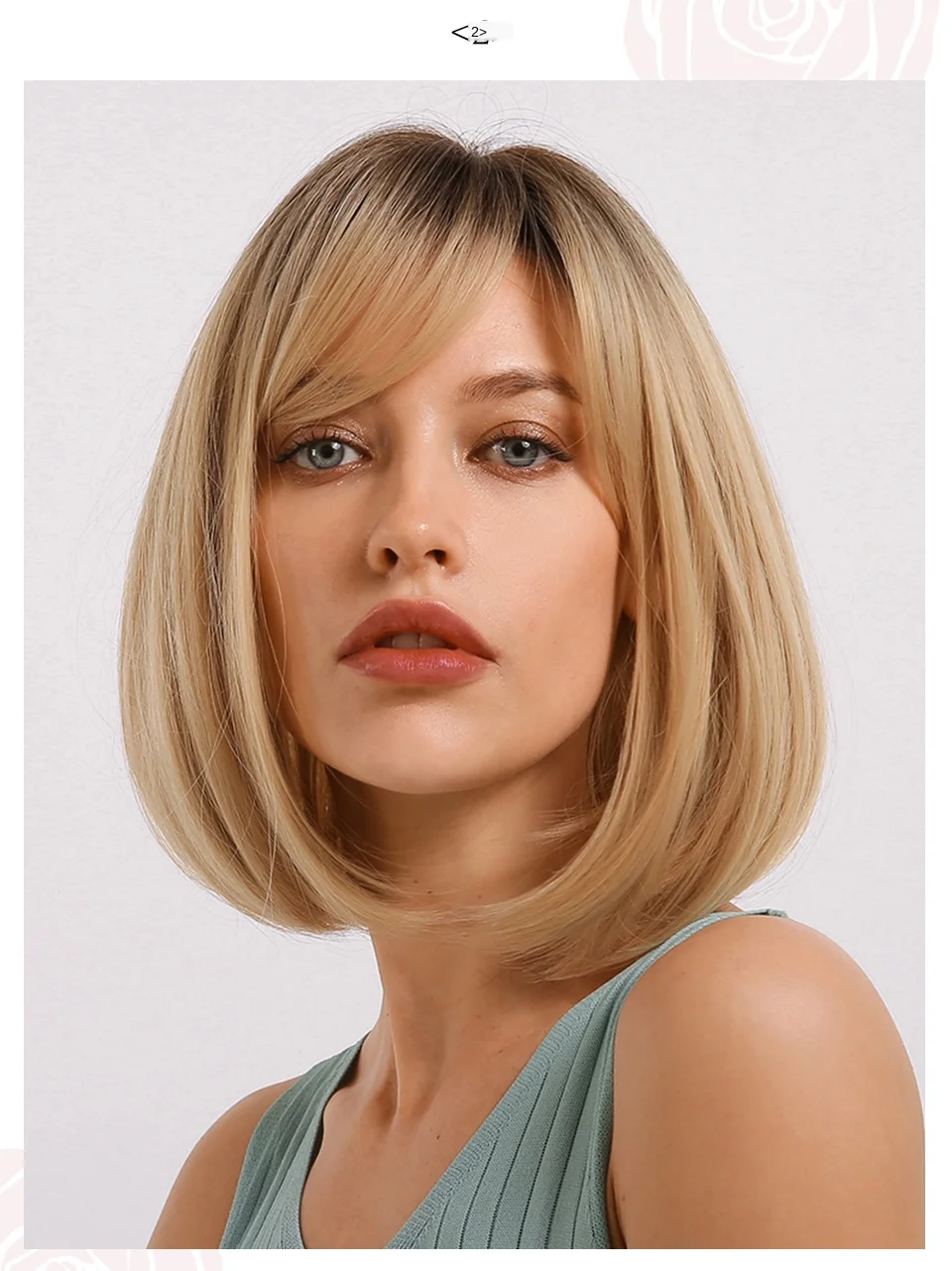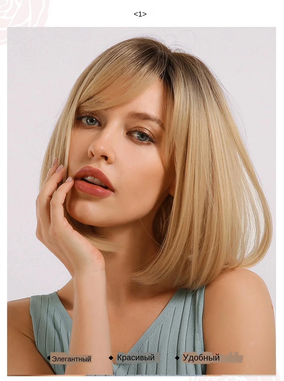 Парик Боб, короткий, прямой, темный, с эффектом деграде, золотистый блонд, с челкой, для женщин, черного и белого цветов, для косплея, вечевечерние, Лолиты, ежедневные волосы