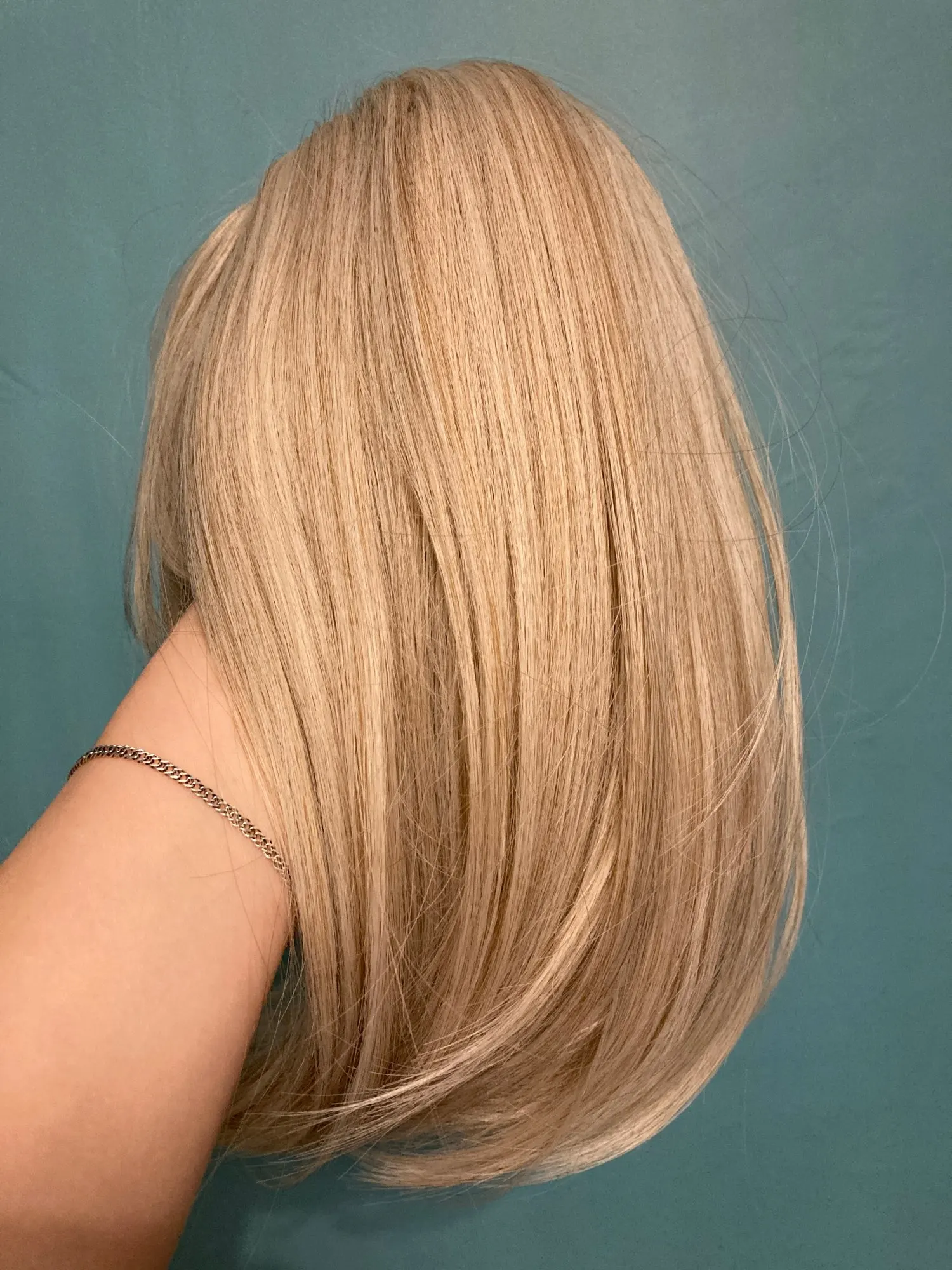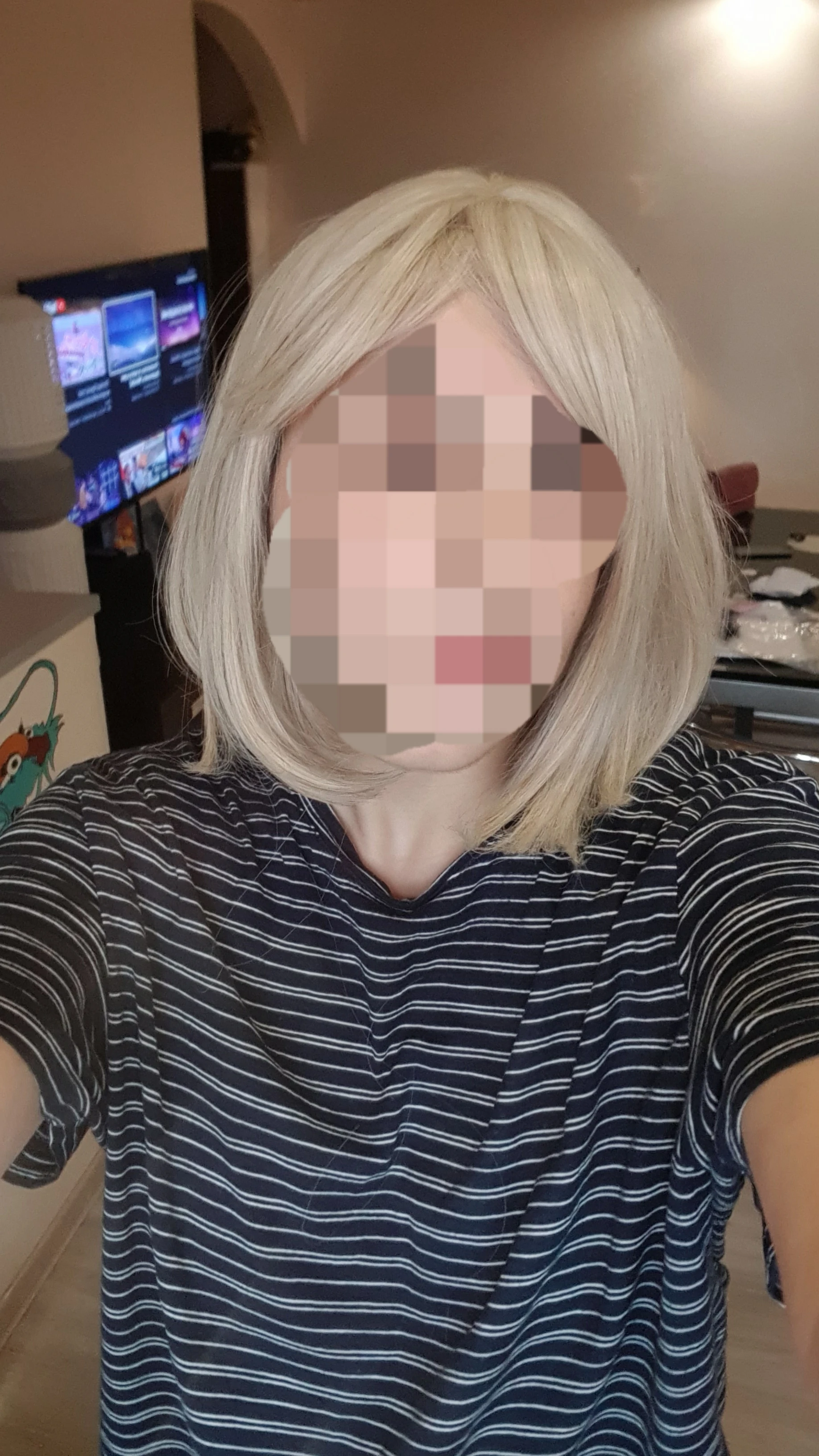 Немного желтее чем кажется на фото, но цвет естественный. Подходит на любую бошку. Маловато волос на затылке, челка несуразная, ни за ухо не убрать, ни выпустить. НО. Парик легко можно уложить и не париться что где то что то вылезет. За свои деньги просто бомба - могло быть и хуже