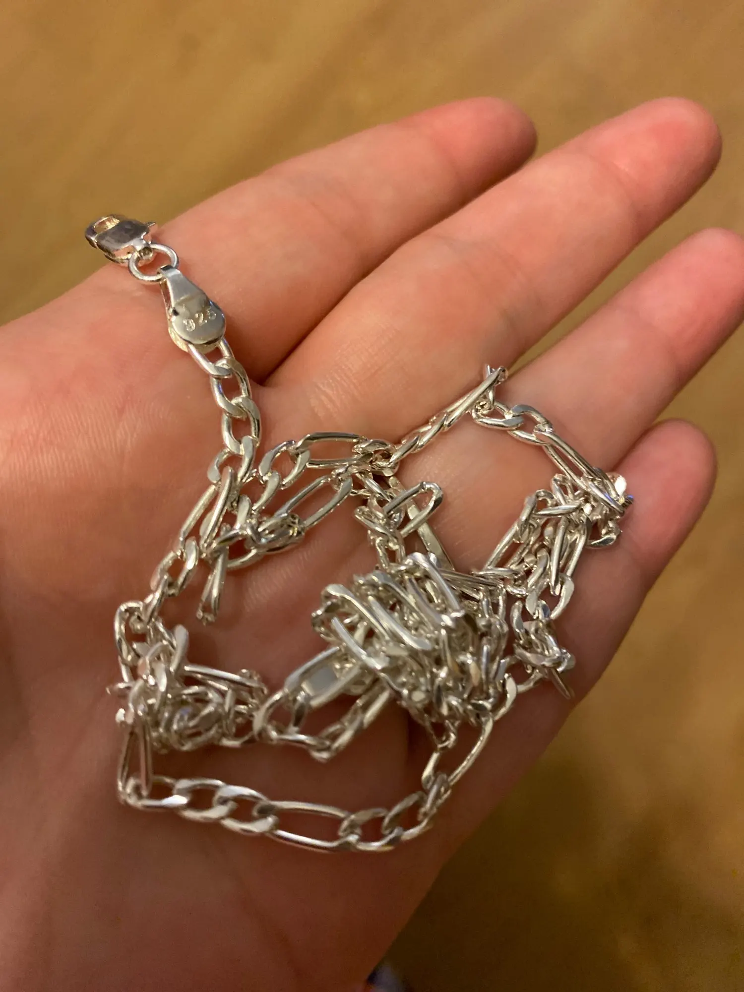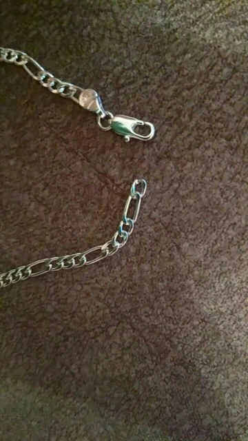 Цепочка красивая, но она не ломается. Это всегда kinking (см. Фото). Кроме того, если вы не прошли тест на магнит (см. Рис.), это означает, что это не Стерлинговое Серебро 925 пробы, как они жалуются. Я не могу использовать цепь для того, что хотел.