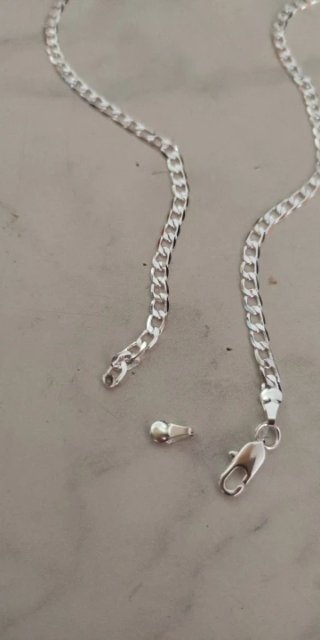 Цепочка хорошая, но соединительное колечко, каторое соеденяет замок и цепочку не запаено, а согнуто? Почему, должно быть запаена?!