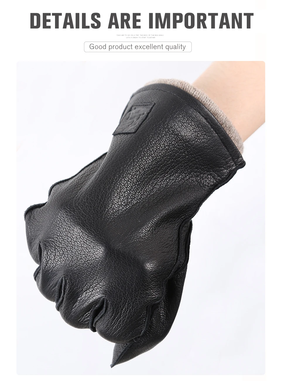 Прошитые вручную кожаные перчатки, мужские теплые мягкие перчатки, ...