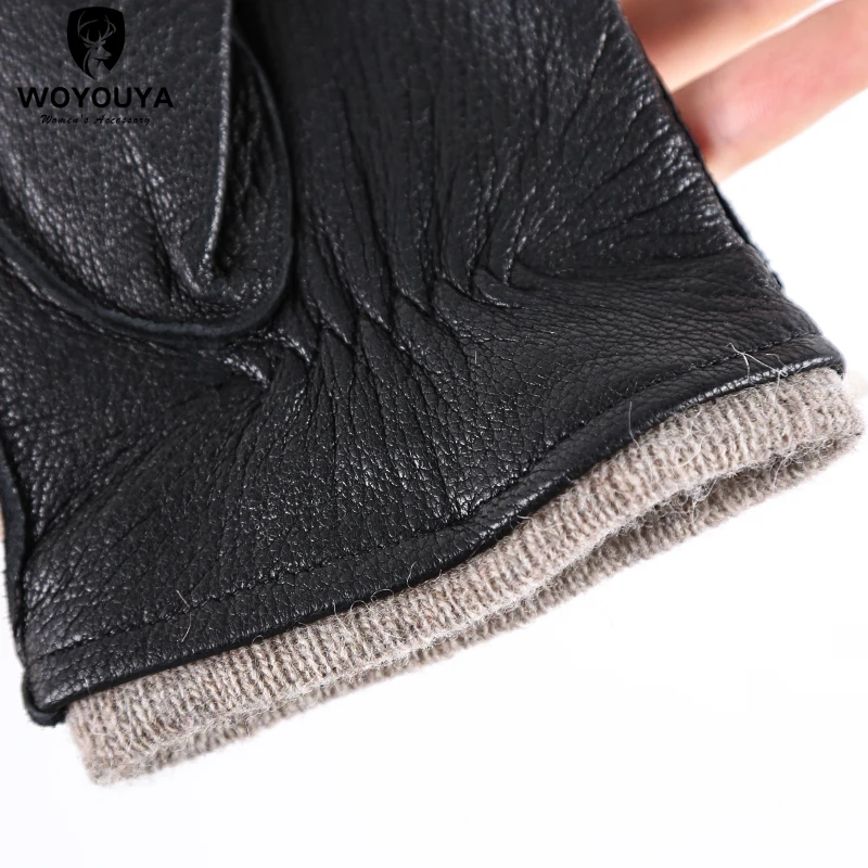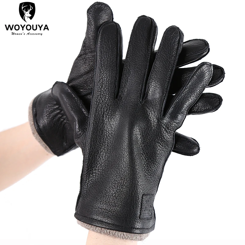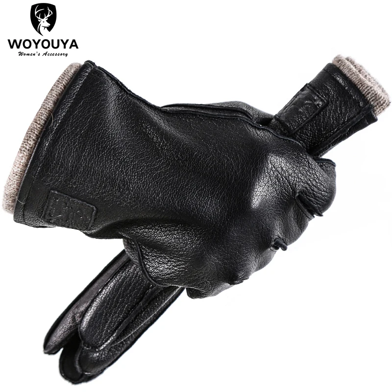Перчатки мужские из натуральной кожи, кожаные перчатки ручной работы для мужчин, черные утолщенные перчатки из овчины, мужские зимние-8011A