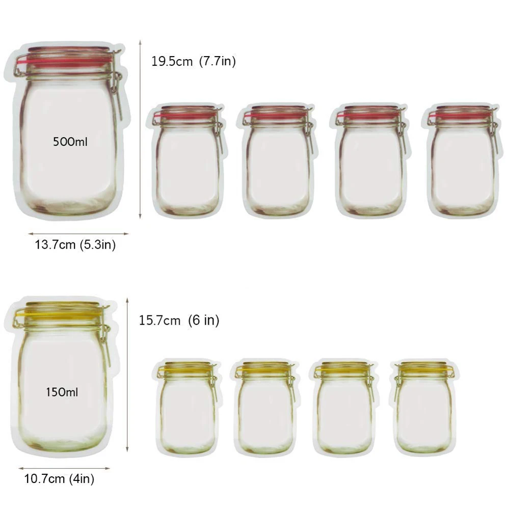 20 шт. Сумки на молнии Mason Jar Многоразовая сумка для хранения за...