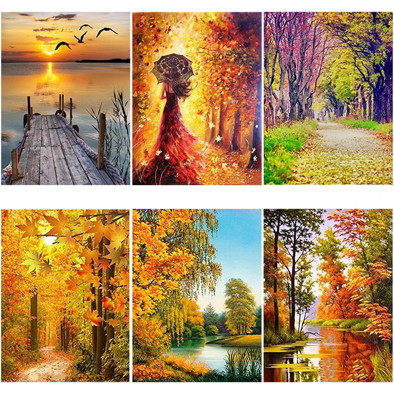 DIY 5D алмазная живопись осенний пейзаж Бриллиантовая вышивка с изображением дерева вышивка крестиком узоры озеро полное круглое сверло искусство стены домашний декор