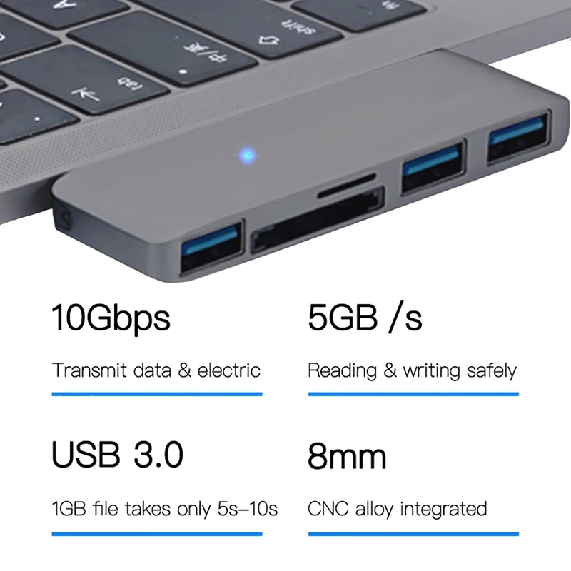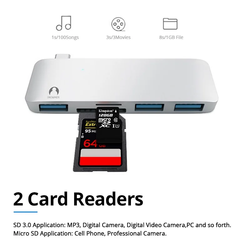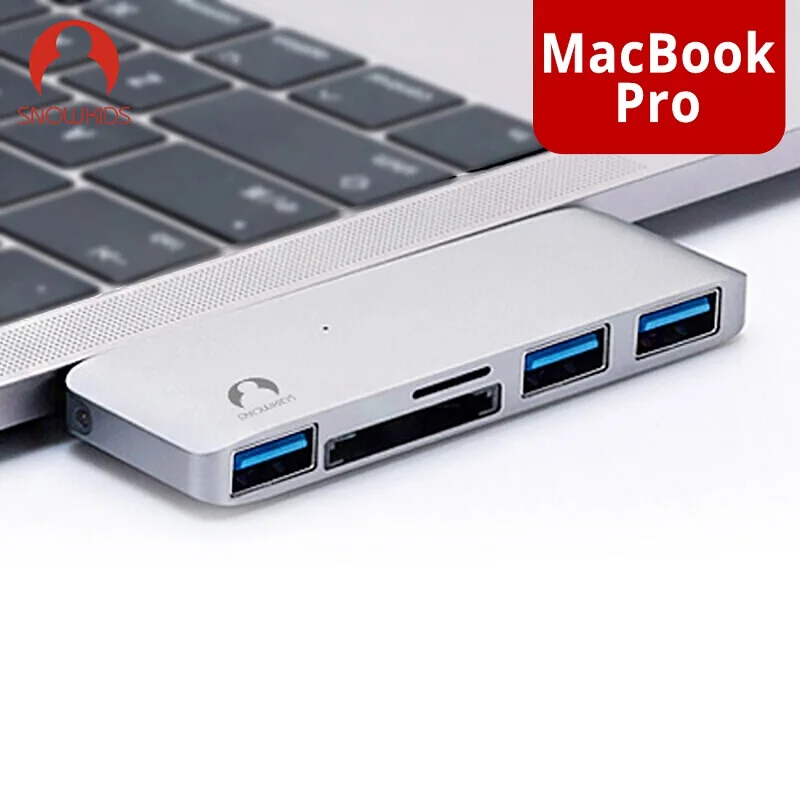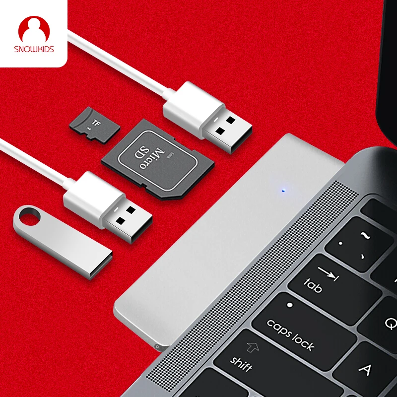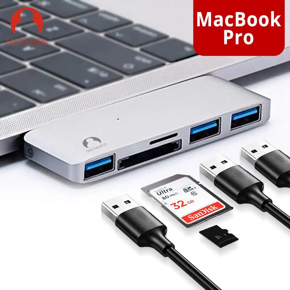 Концентратор USB C Snowkids, адаптер USB 3,0 с кард-ридером TF SD для MacBook ProAir Type-C Hub 12 "13" 15"