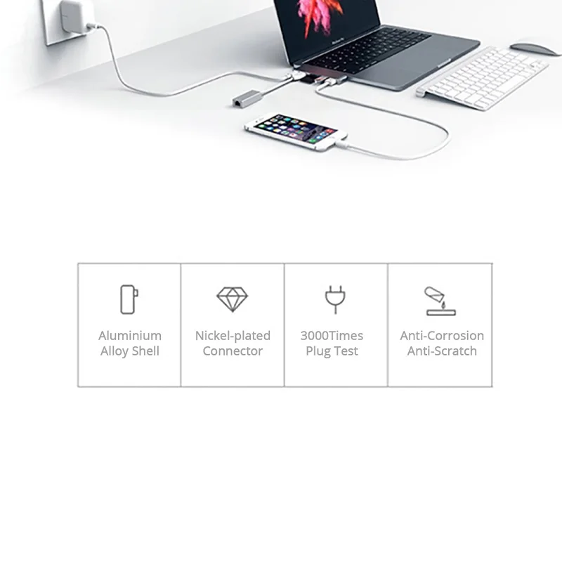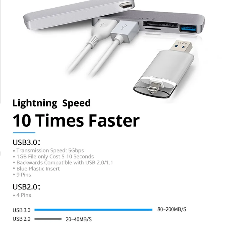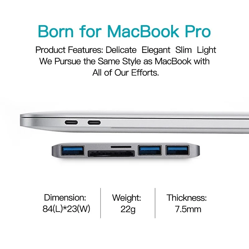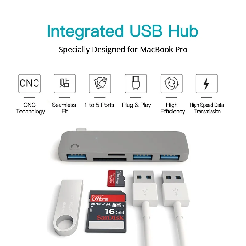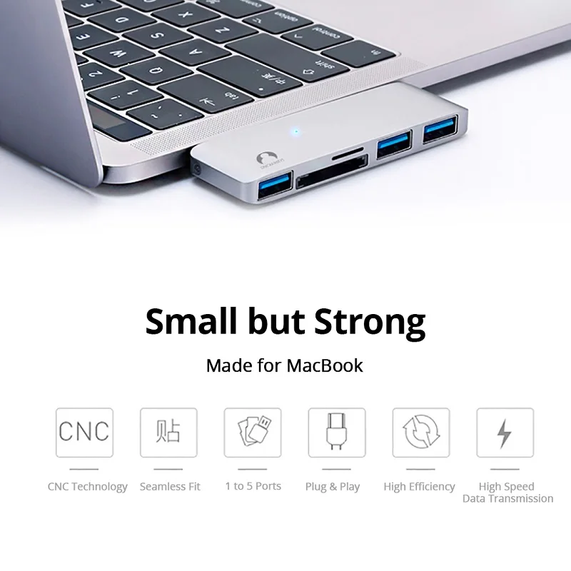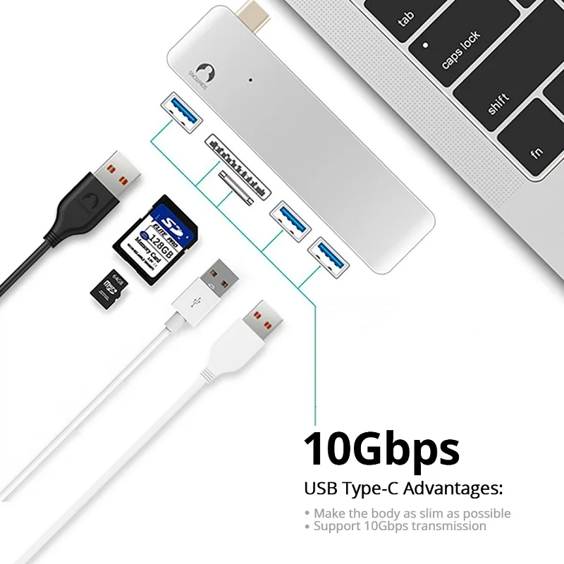 Концентратор USB C Snowkids, адаптер USB 3,0 с кард-ридером TF SD для MacBook ProAir Type-C Hub 12 "13" 15"