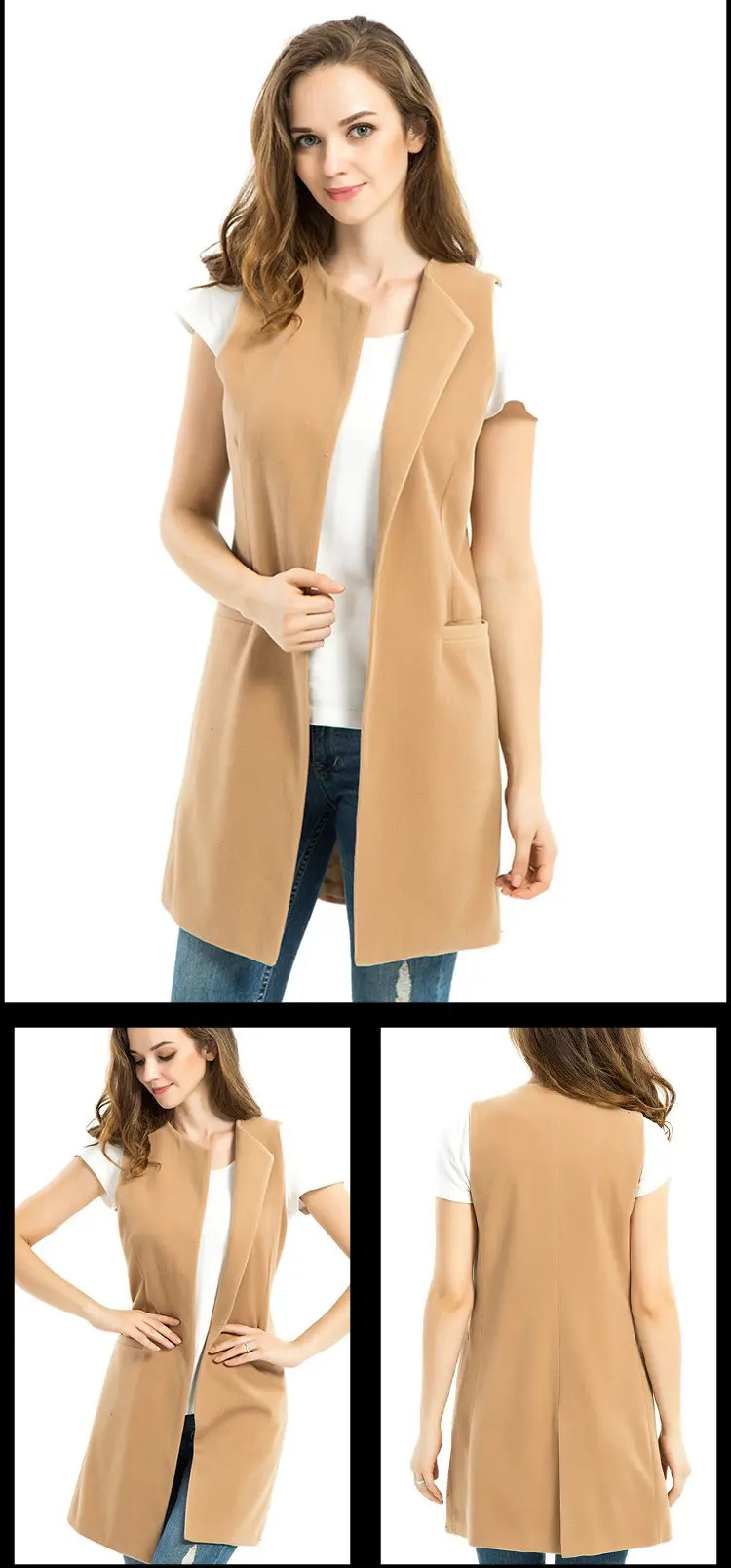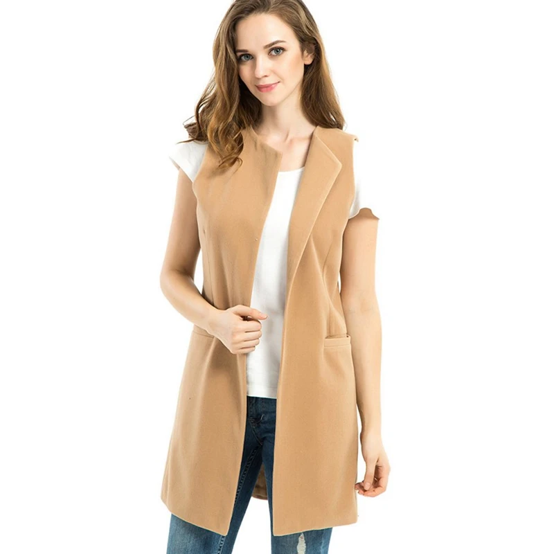 Жилет женский офисный однотонный с карманами, Повседневная Верхняя одежда без рукавов, черныйхаки, 3xl, весна-осень