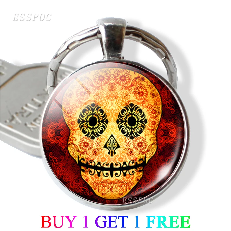 Брелок сахарный череп, стеклянный купольный кабошон, кулон в виде черепа, ручной работы, подарочные украшения