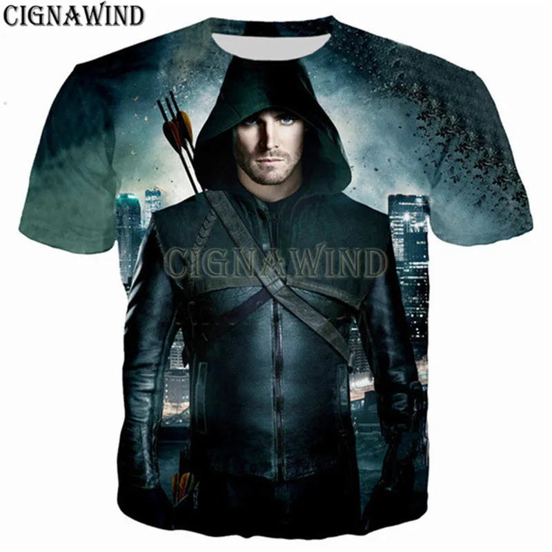 Футболка унисекс в стиле Харадзюку, стильная рубашка с 3D-принтом супергероя, Зеленая Стрела, уличная одежда, для мужчин и женщин