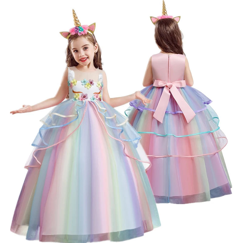Элегантный Unicron, свадебное платье, вечернее платье, детская одежда, детские платья, платье для девочек с цветочным принтом длинное платье в пол, платье для дня рождения; Одежда для девочек-подростков