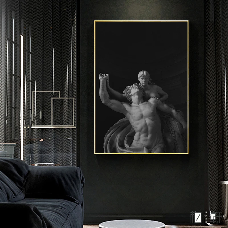 Плакаты и принты, Классическая скульптура черного и белого цветов, Абстрактная Картина на холсте, настенные картины для гостиной, украшение для дома