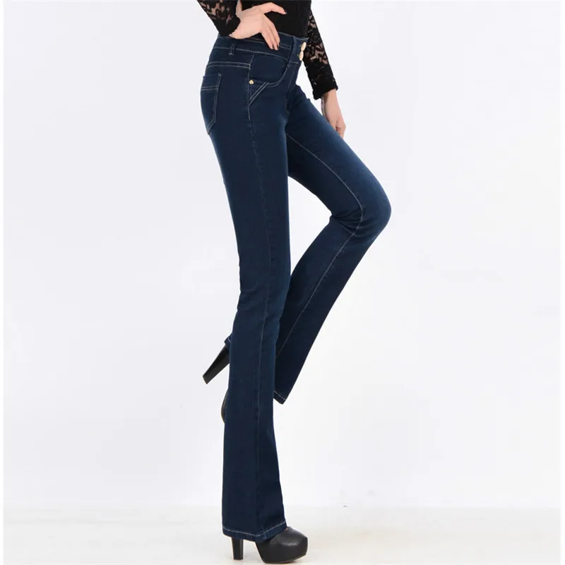 Женские Эластичные облегающие джинсовые брюки-клеш, джинсы с высокой талией для мам, новинка 2022, Дышащие Модные женские брюки-клеш