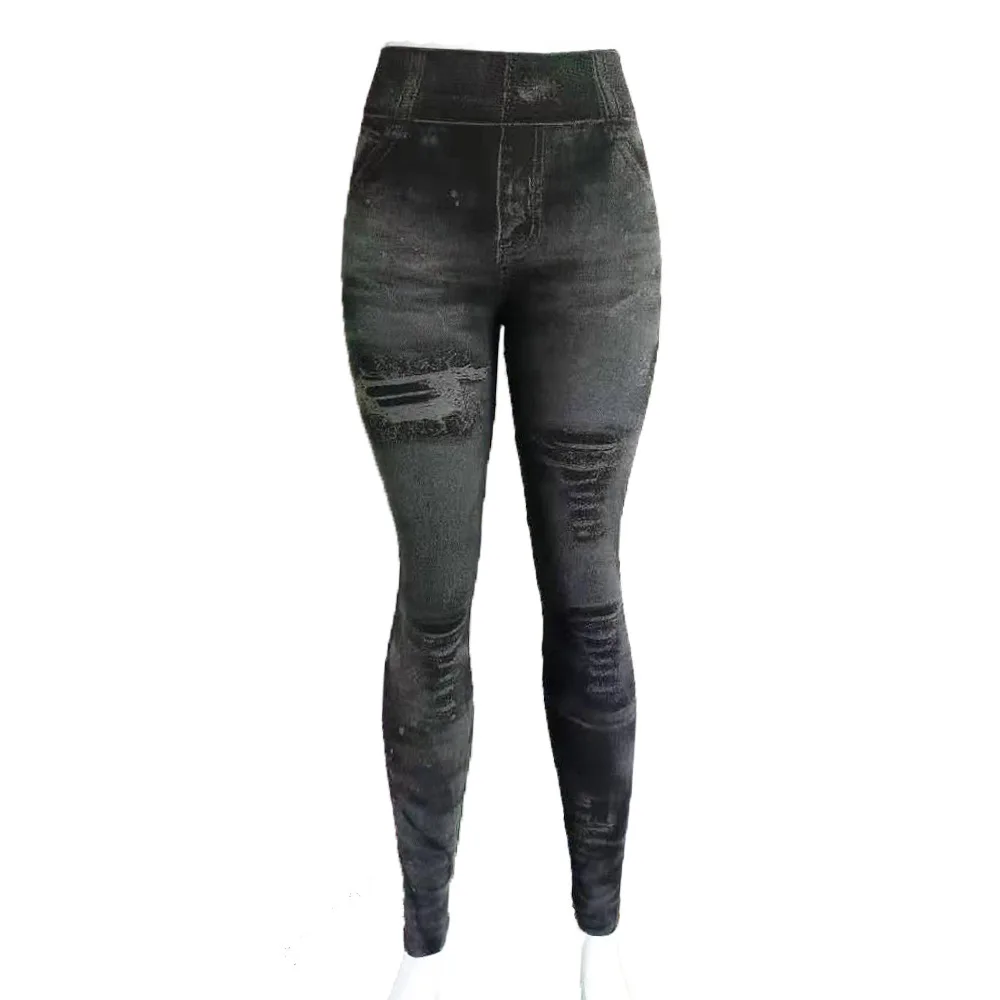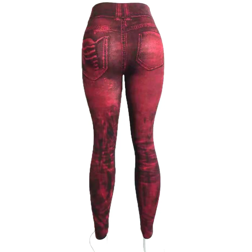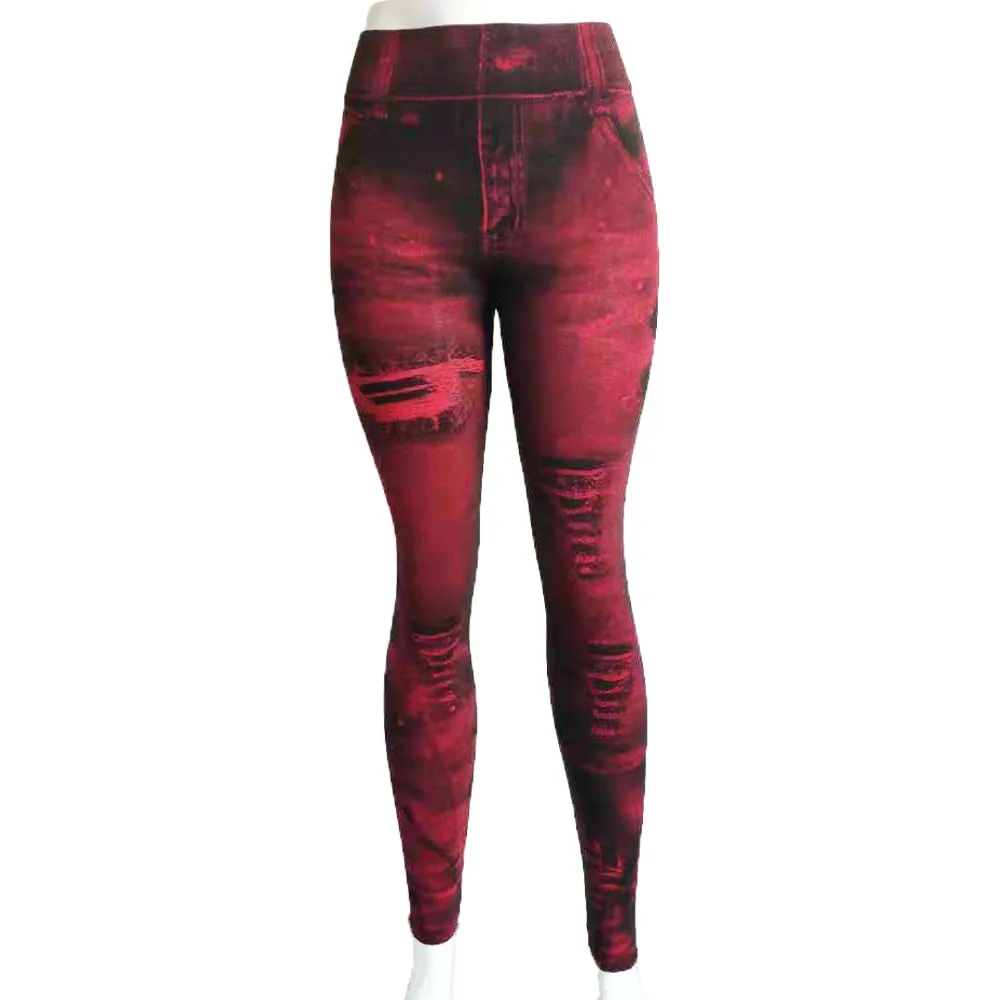 Леггинсы, летние, тонкие, сексуальные, жаккардовые, трикотажные, имитация денима, узкие Женские легинсы