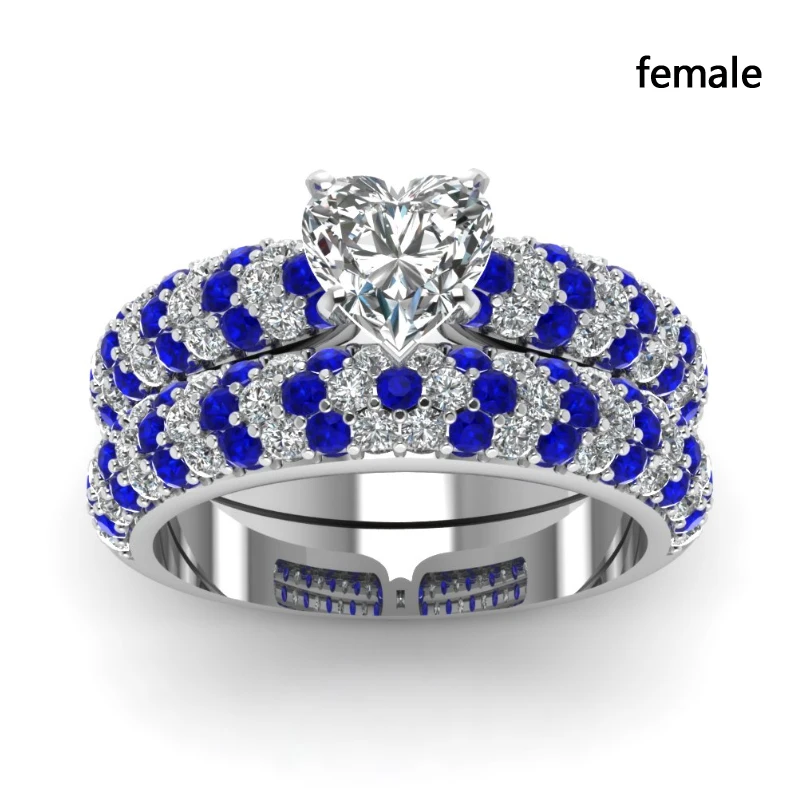 Набор колец из нержавеющей стали с синимбелым сердцем и цирконием д...