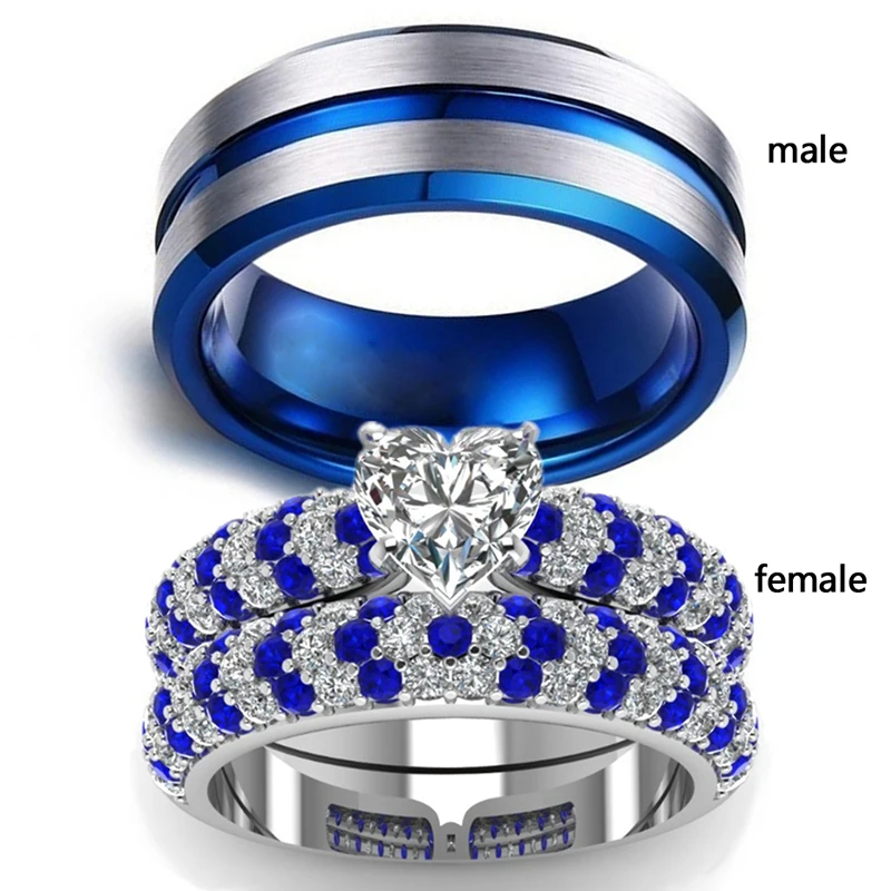 Модные парные кольца из нержавеющей стали, синее мужское кольцо, женский набор из искусственного циркония, свадебное обручальное кольцо, подарок