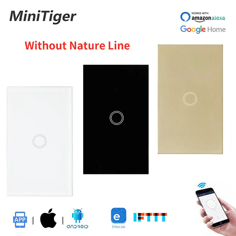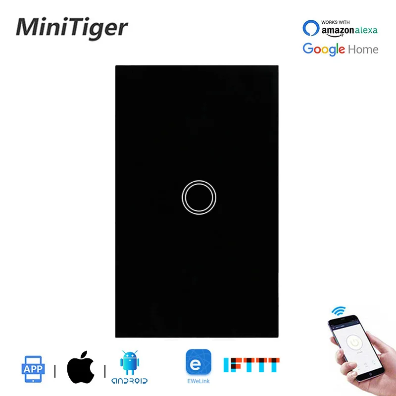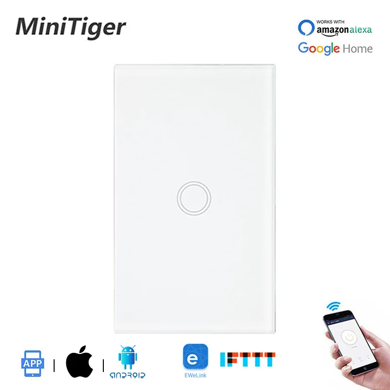 Minitiger 1 банда 1 способ США стандартный настенный сенсорный выключатель Ewelink без нейтрального провода требуется умный светильник переключатель Одиночная пожарная линия