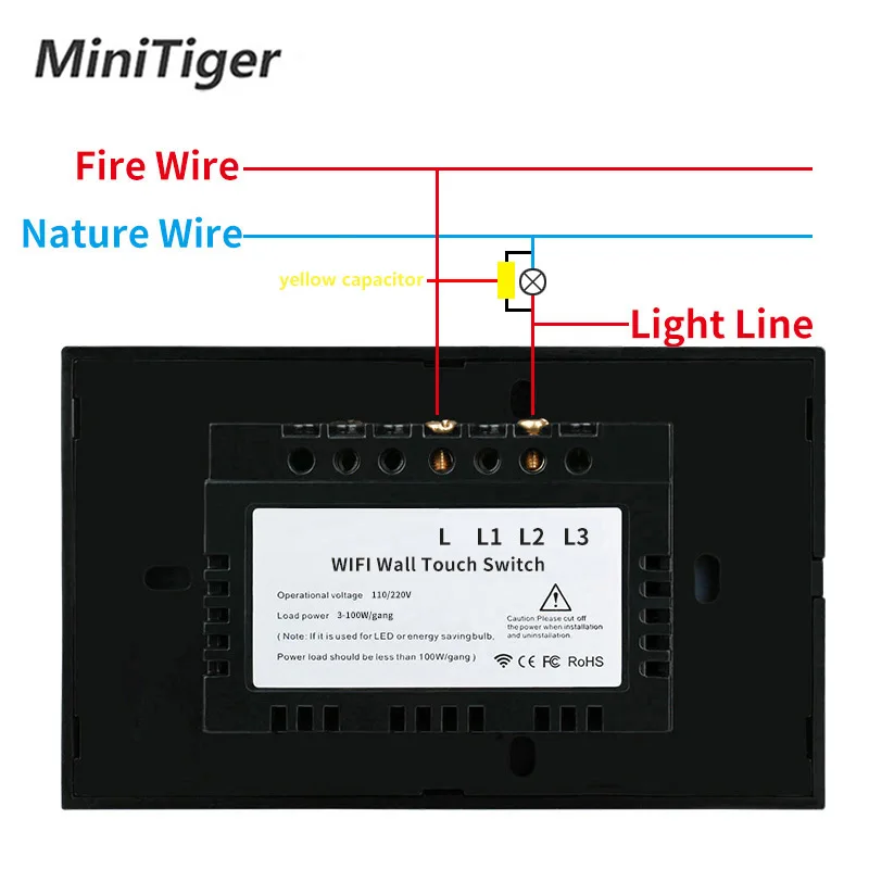 Отсканируйте qr-код на карточке qr-кода, чтобы загрузить приложение и прочитать руководство пользователя. Этот Wi-Fi сенсорный выключатель должен подключаться к нейтральной линии.