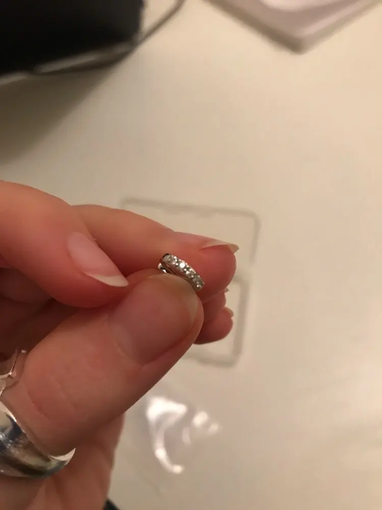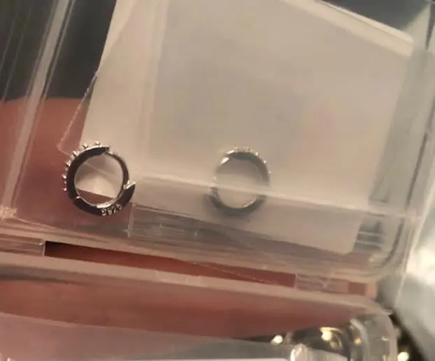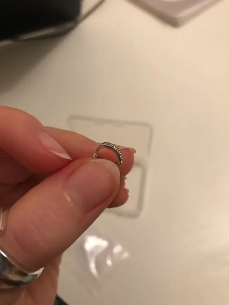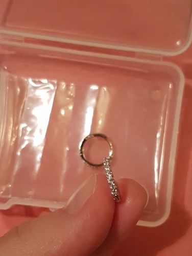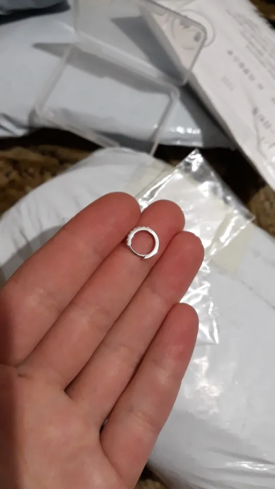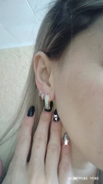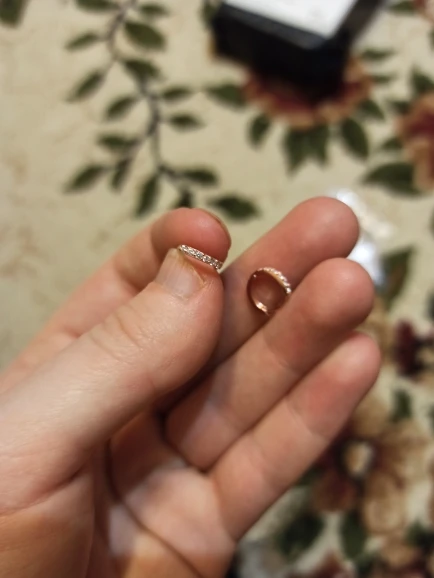 Очень красивые колечки. Благородный приятный цвет, сверкающие камушки, аккуратная лента. Застёжка слабоват, но пока не слетели. Жаль не угадала с размером, на хрящ оказалась маловата. Получится носить лишь на выход. Планирую заказать размер побольше. Продавец быстро отправил.
