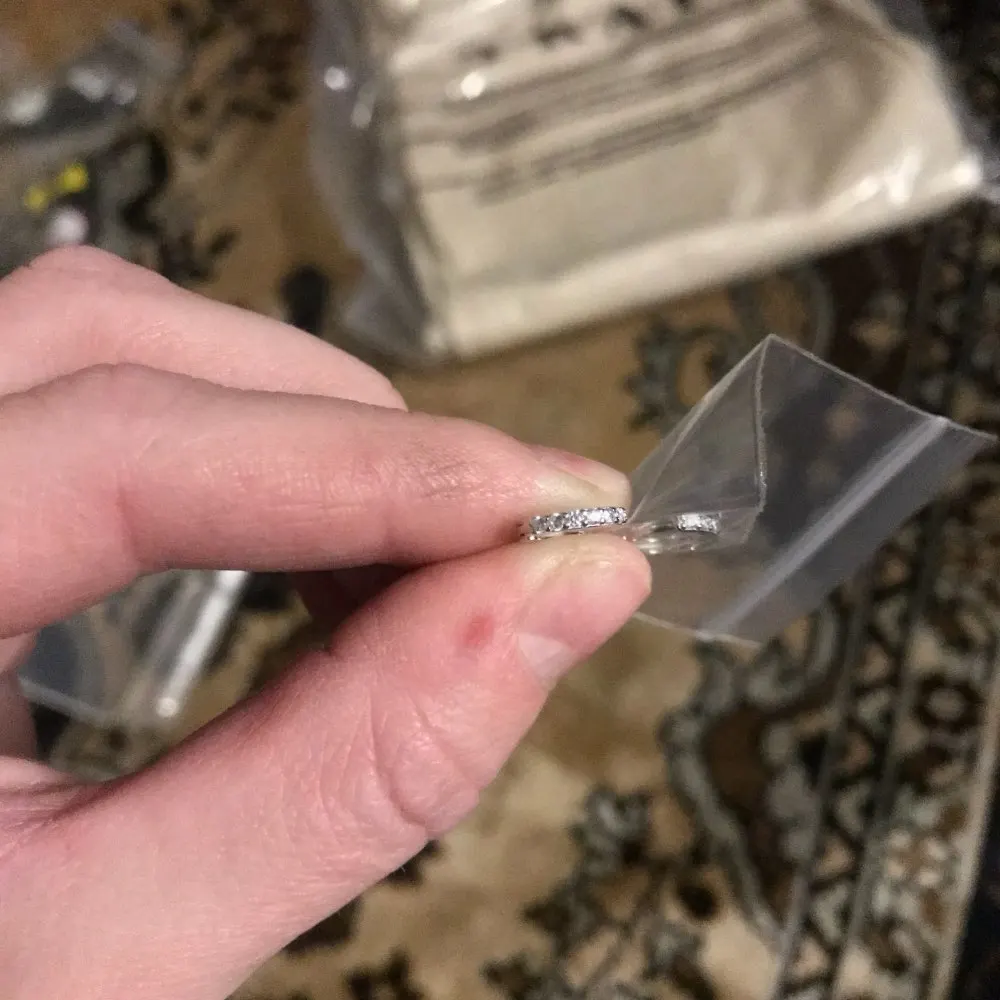 Пришло два кольца. Качество хорошее, но, в одном кольце не хватает одного камушка