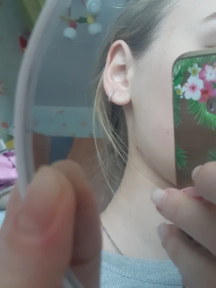 Серёжки маленькие,милые,пришли достаточно быстро в Ростовскую область.Но думаю надо было брать самый маленький размер,если хотите чтоб красиво смотрелось в дополнительном проколе уха.