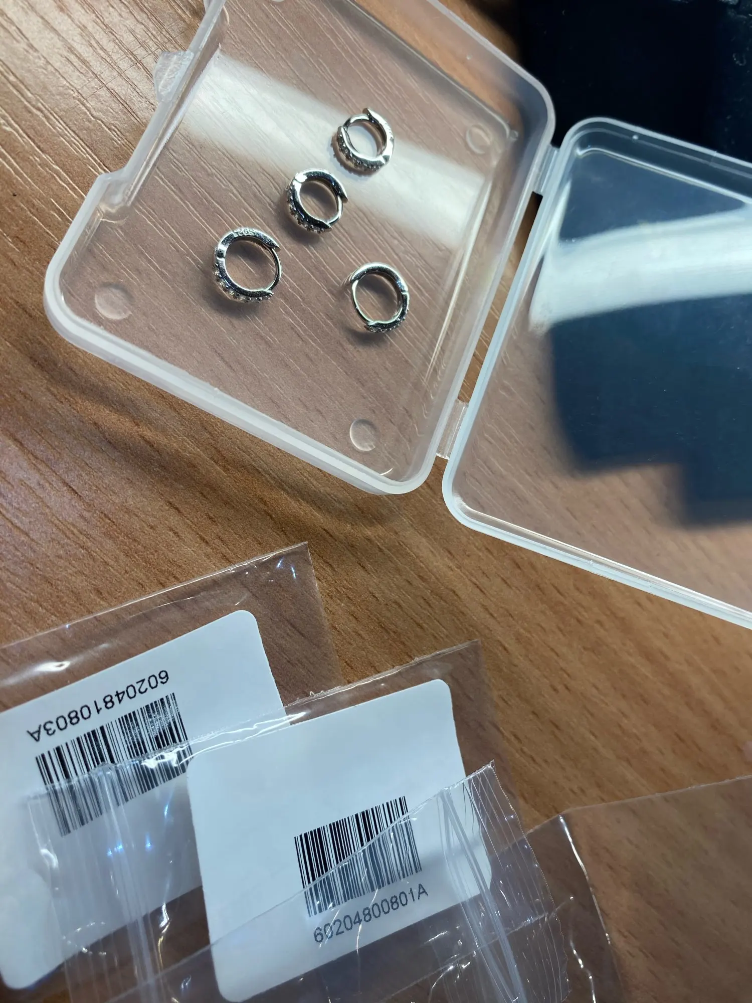 Каждая серьга в индивидуальном пакетике) очень красивые и миниатюрные. Заказала разные по размеру серьги, но зашли самые маленькие) фот не передаёт красоты))) закажу ещё маленькие однозначно. У настигаемого размера не найти с такой застёжкой