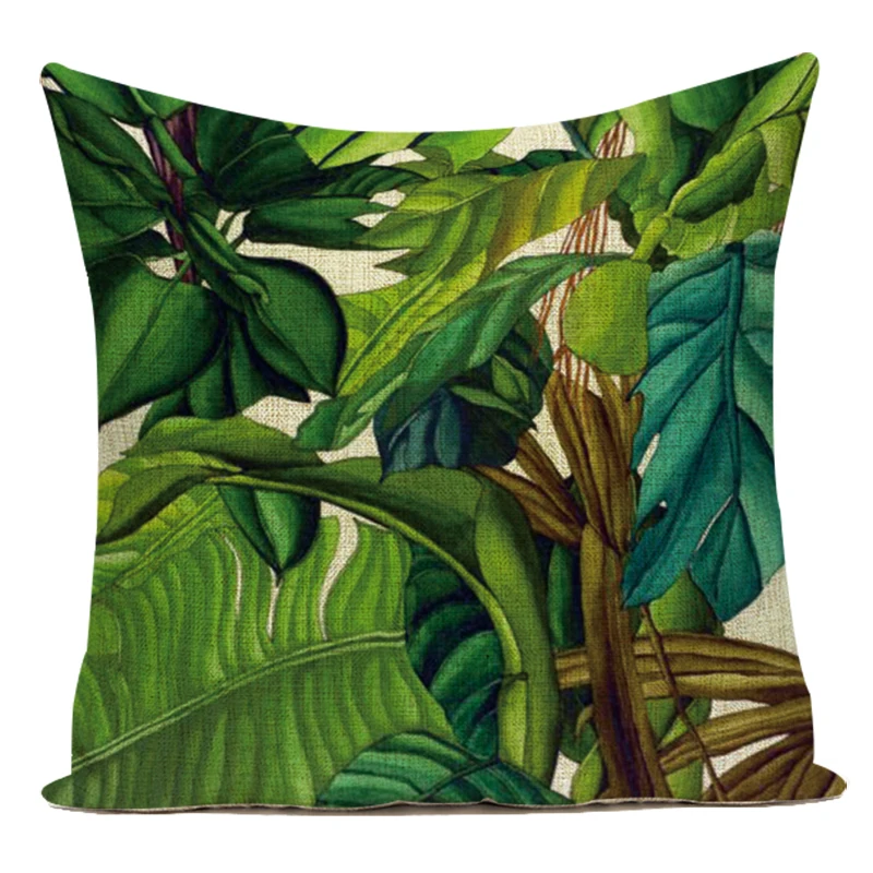 Декоративные подушки из полиэстера, тропические зеленые растения, л...