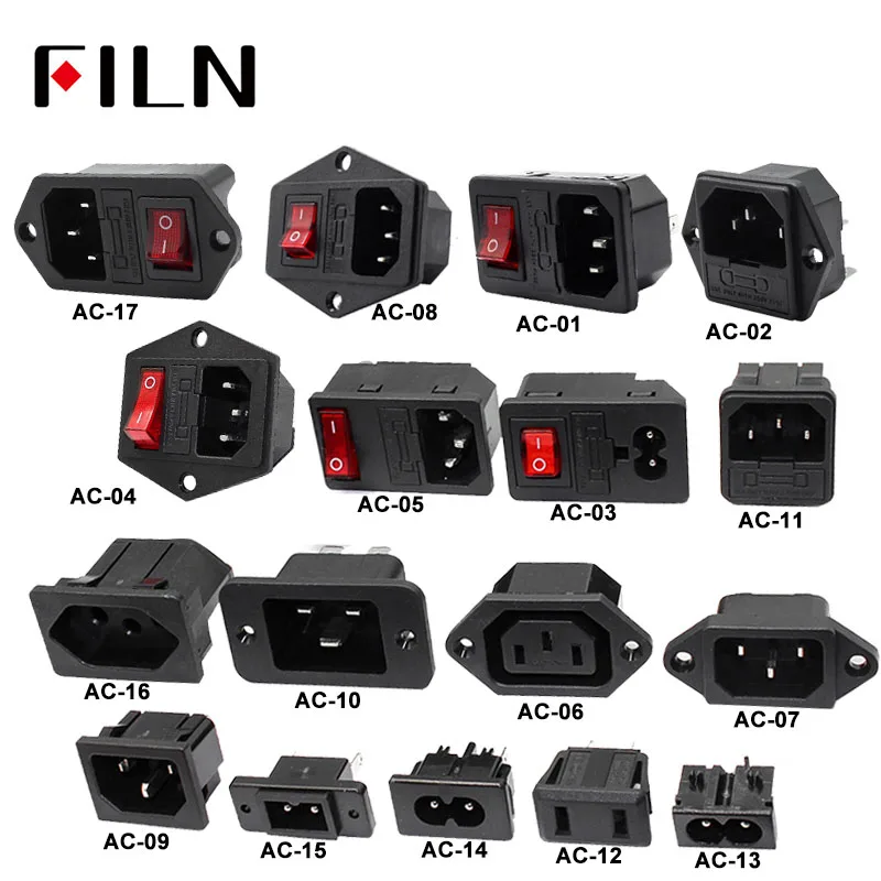 4. Электрическая розетка переменного тока AC-08 А В переменного тока, 3-контактная электрическая розетка переменного тока IEC320 C14 10 А, держатель предохранителя, крепление на винтах