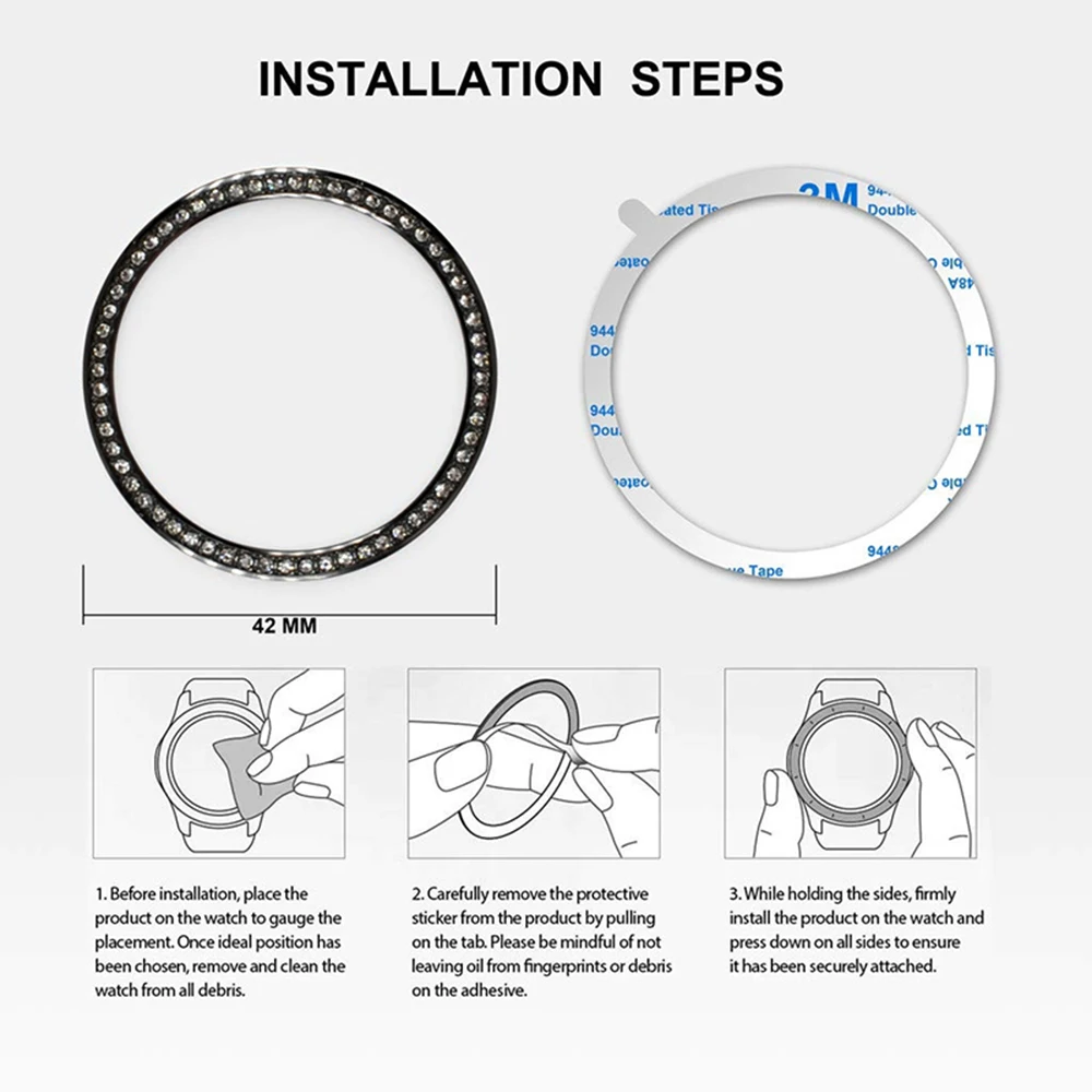 Подходит для Samsung Galaxy watch 42 мм R810 / Galaxy watch 46 мм R800 / R850 / Gear S31. Чтобы быть особенным: матовые Металлические ободки кольца делают выдающиеся аксессуары для часов Galaxy. Это не только стильные акценты, но и обновленная Настройка. Высокое качество покрытый ободок для Samsung Galaxy Watch 42 мм/46 мм Smartwatch, делает ваши часы более высококлассными и прочными, 3 узора/3 цвета на выбор.2. Превосходное мастерство: высокополированное превосходное мастерство, образующее высококачественное кольцо из нержавеющей стали, не только делает ваши часы более стильными и дорогими, но и обеспечивает уровень защиты.3. Точная дуга: в соответствии с оригинальными часами radian custom, и обеспечить степень совпадения установки продукта. Крепление протрите мочалкой поверхность 3M клейкая лента, который обладает сильной адгезией и она не является вредным для краски, с трудом спадает.4. Ваш лучший выбор: кольцо с ободком придает вашим часам galaxy новый вид, будь то в деловой деятельности или в повседневной жизни, носите такой стильный и изысканный ободок, чтобы добавить к вам различное чувство моды в любом случае.Примечание:42 мм подходят для samsung galaxy watch 42 мм и samsung gear спортивные часы46 мм подходит для samsung galaxy watch 46 мм и samsung galaxy Gear S3 watch