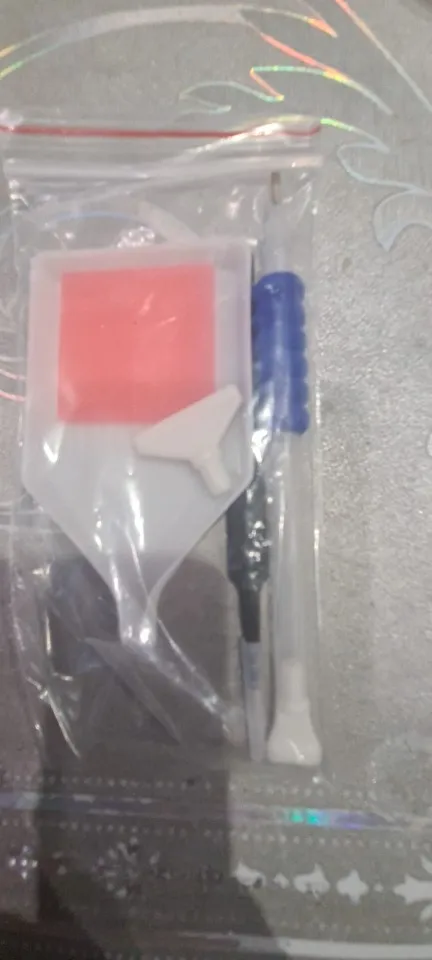 Супер быстрая доставка, спасибо продавцу. В комлекте пинцет, ручка, лоточек для камешков. Еще не клеила , но выглядят супер, камешки яркие.