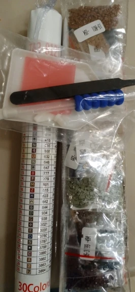 Изделие изготовлено в идеальном состоянии и содержит все материалы, необходимые для создания картины. Мне действительно нравится аппликатор, несущий пальчиковую подкладку и двойной клей. Пинцет для бриллиантов также включен. Посылка прибыла очень быстро.