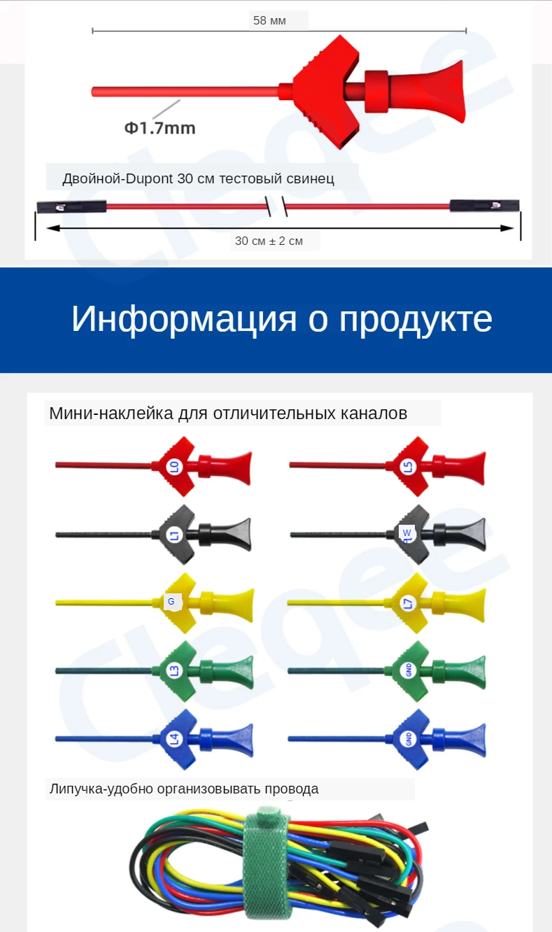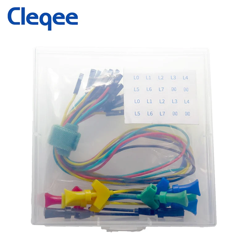Cleqee миниатюрный SMD IC логический анализатор, захват, набор крючков для тестирования, силиконовый кабель Dupont с отличной наклейкой, аксессуары для осциллографа