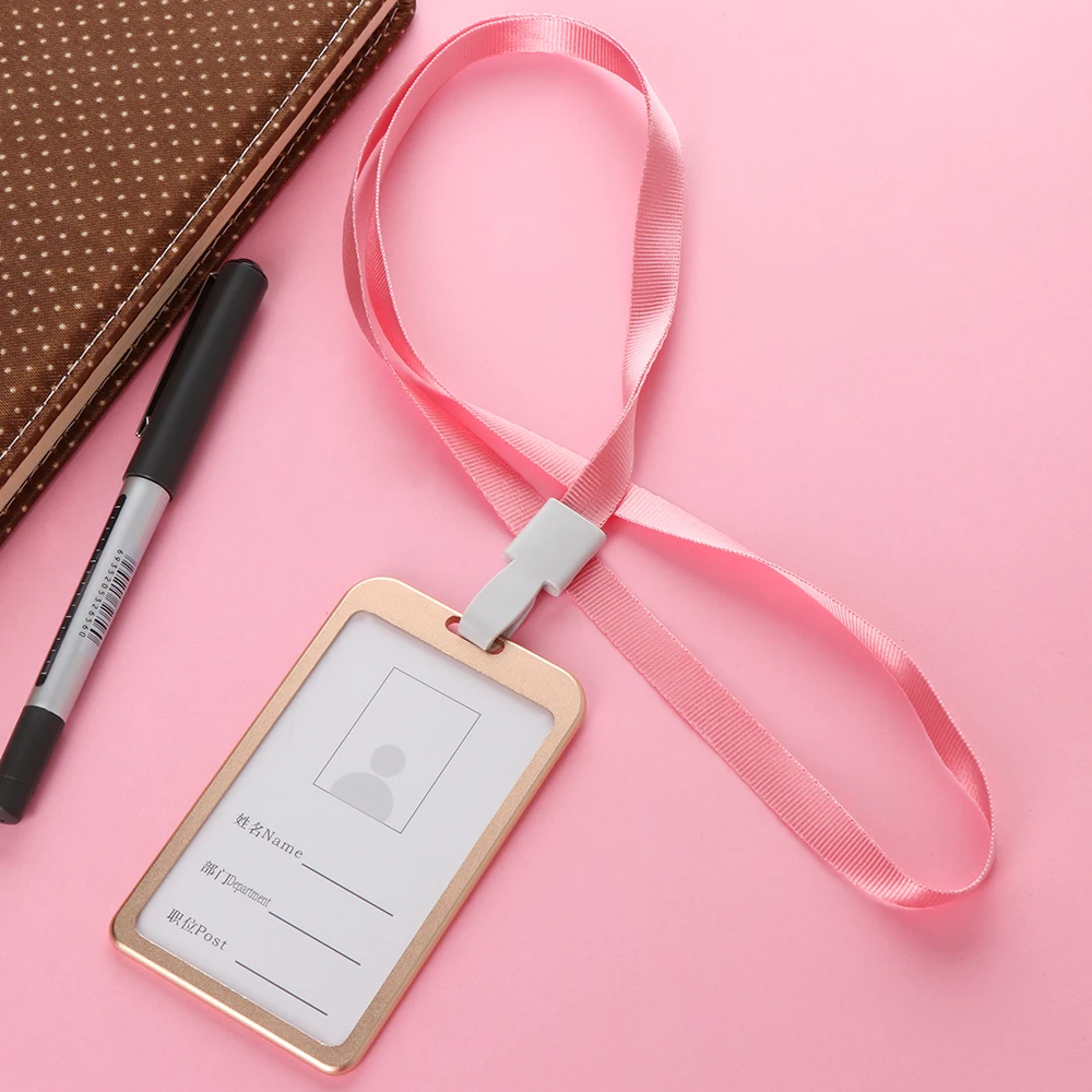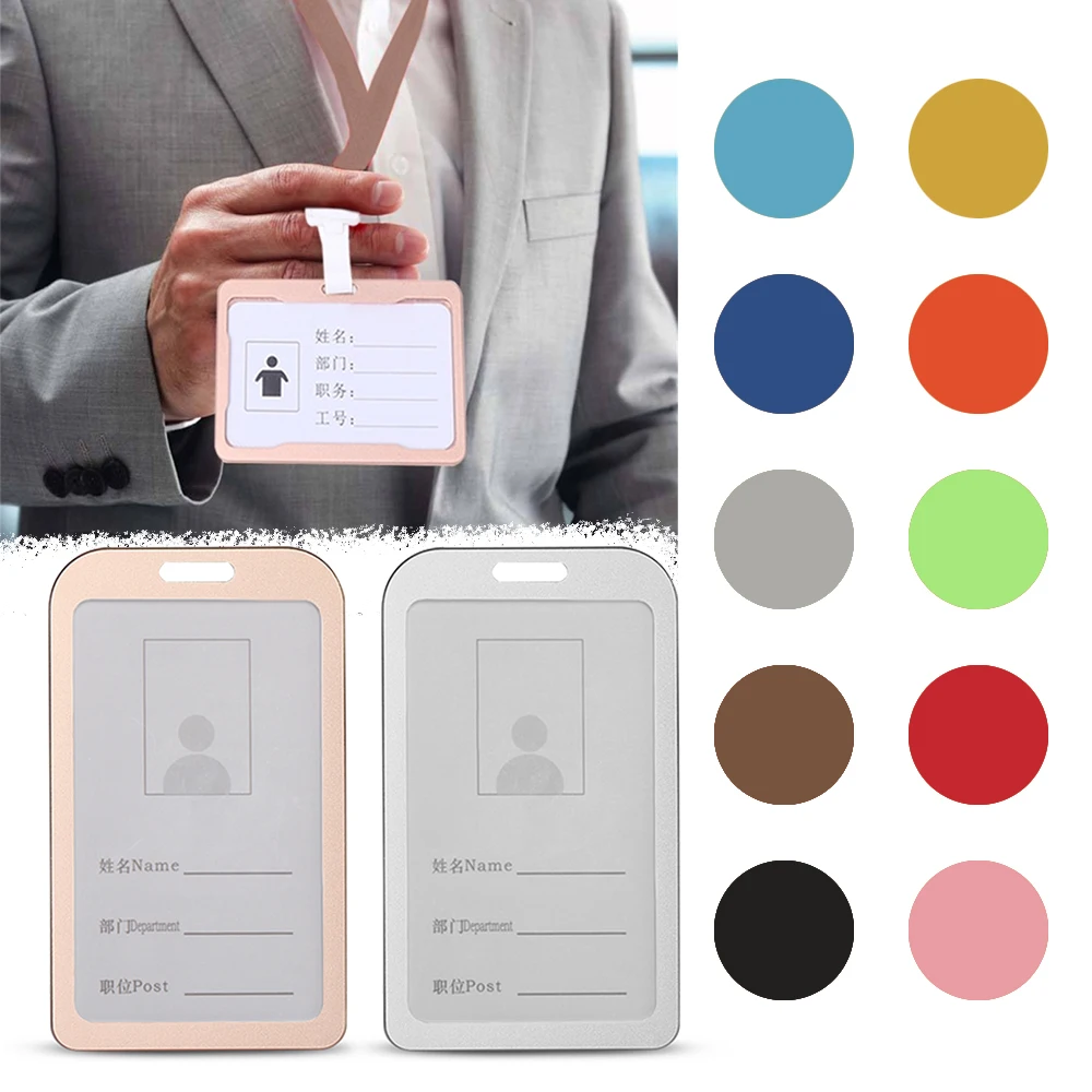 Бейдж из алюминиевого сплава с именем и кармашком для деловых карт, бейдж для рабочего удостоверения, ремешок-держатель, популярный вертикальный металлический чехол для рабочего удостоверения, 1 шт.