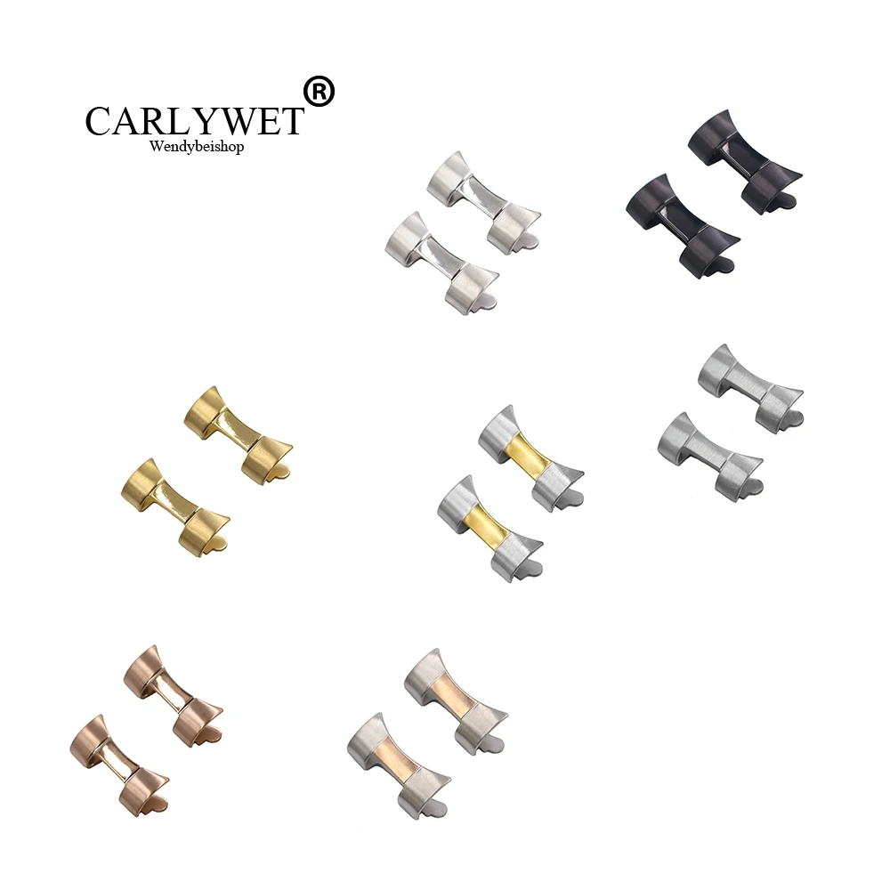 Ремешок для часов CARLYWET, из нержавеющей стали, серебристого и золотого цвета, 19, 20 мм, изогнутые детали для часов, 2 шт.