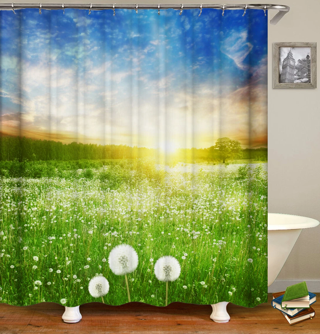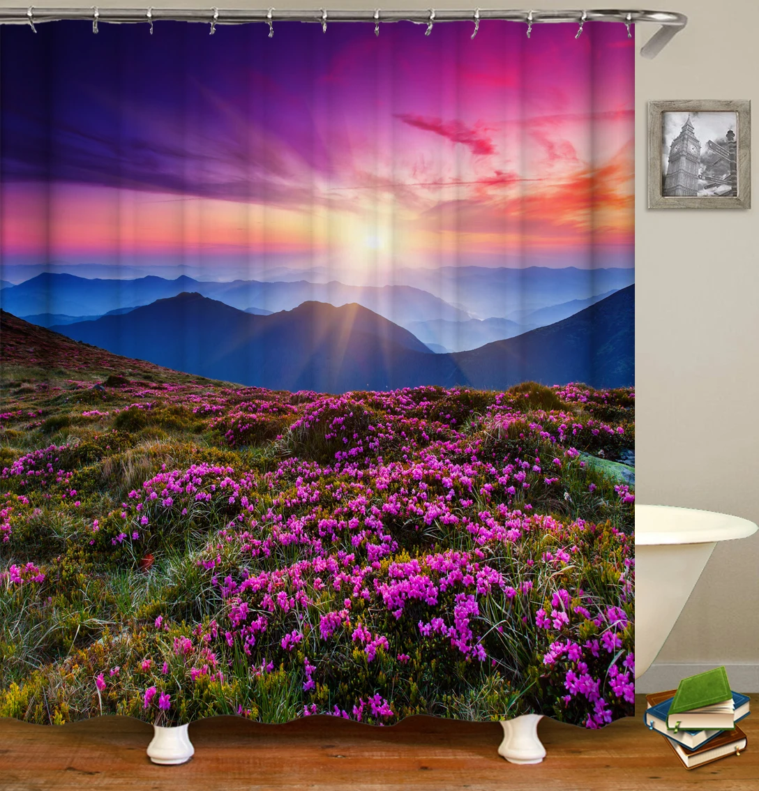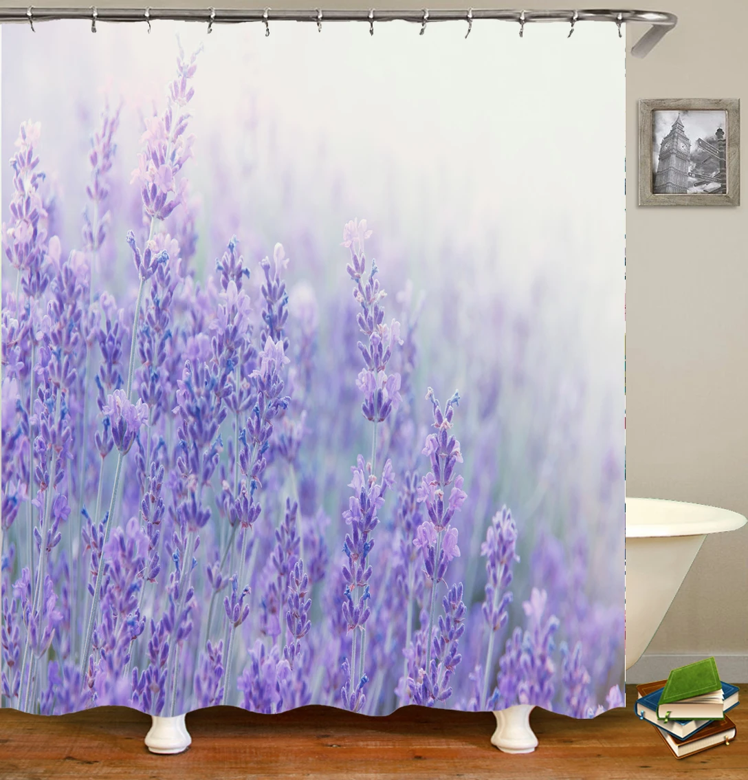 Занавеска для душа с цветами лаванды, водонепроницаемая, с цветочным принтом, 12 крючков, для украшения дома