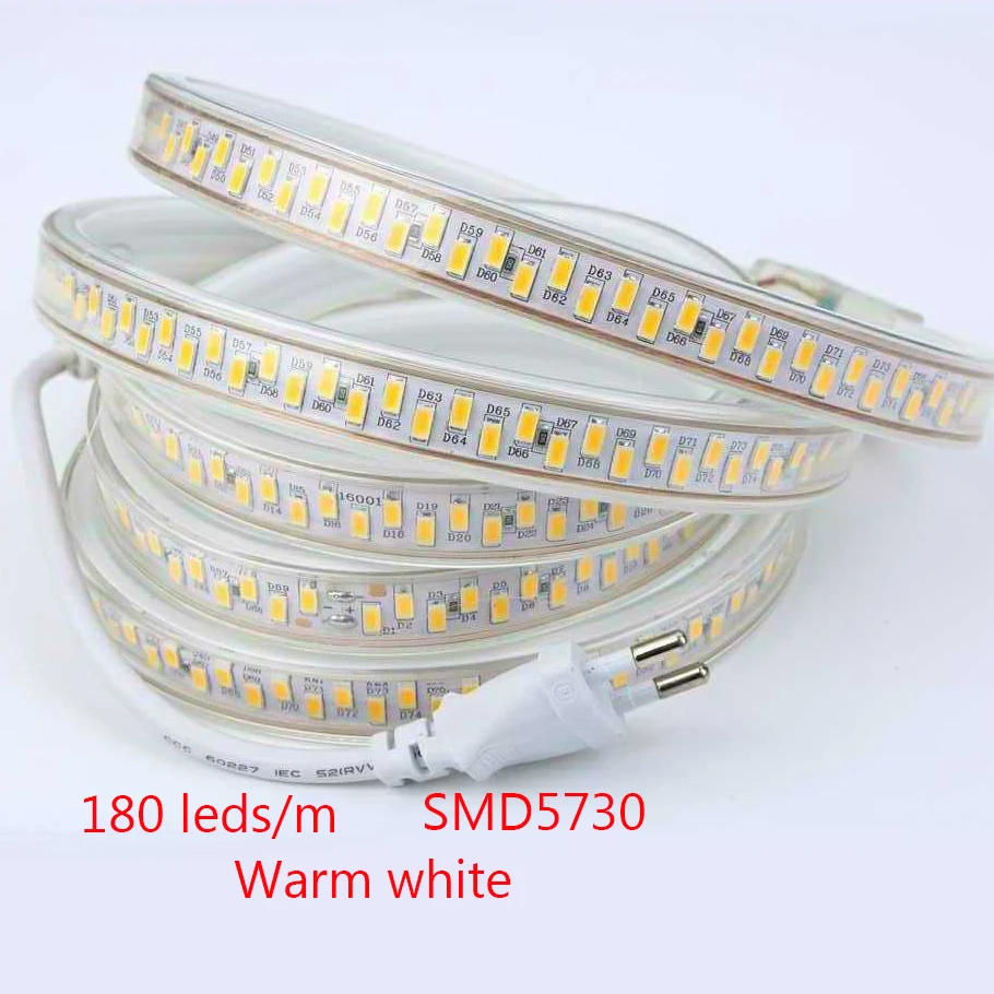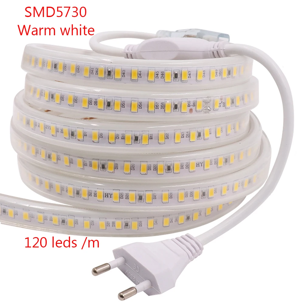 Светодиодная лента 5050 5730 2835 5630 ленсветильник щения 220 В светодиодов 60 светодиодов Водонепроницаемая светодиодная лента теплый белыйRGB украшение