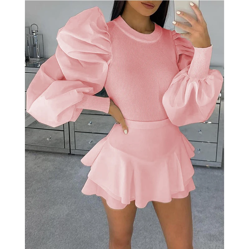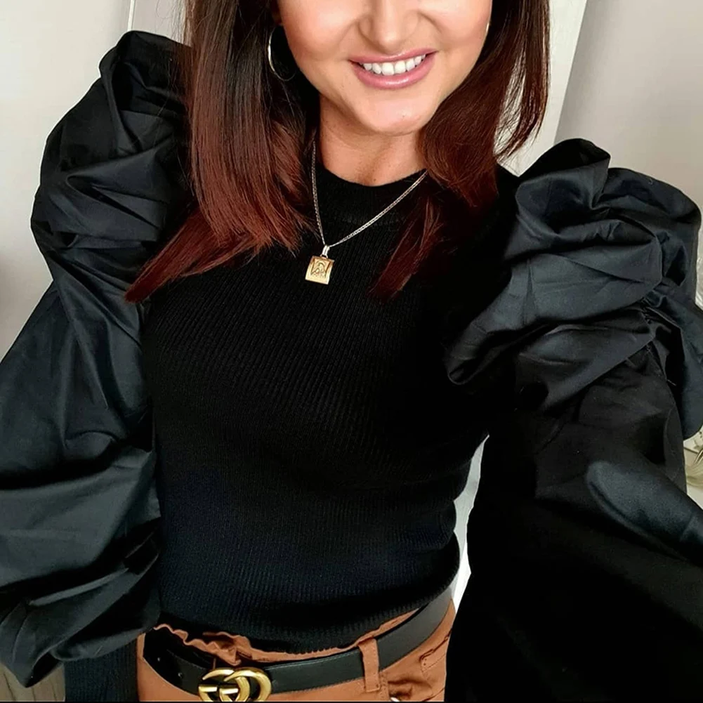 Женские топы с пышными рукавами, пуловер, свитер, блузка, свободный...