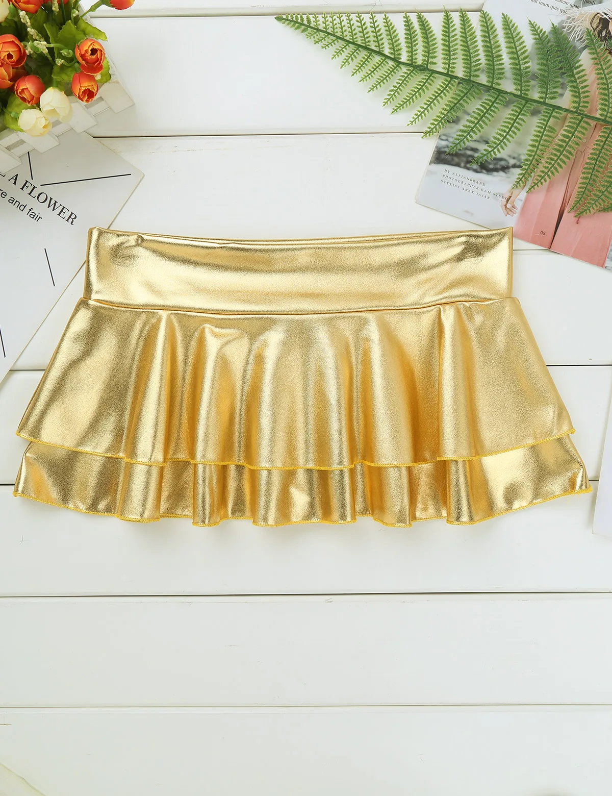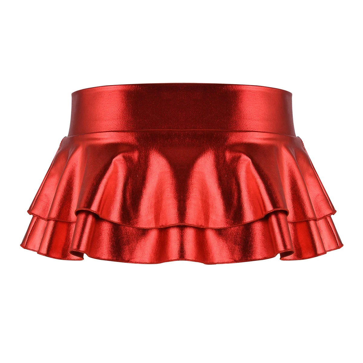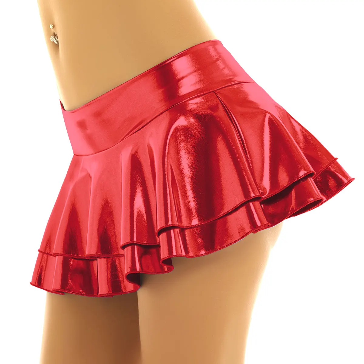 Женские блестящие металлические шорты с низкой посадкой, с оборками, для танцев на Пилоне, кожаные, Клубные, вечерние, танцевальные, праздничные, Пикантные мини-юбки