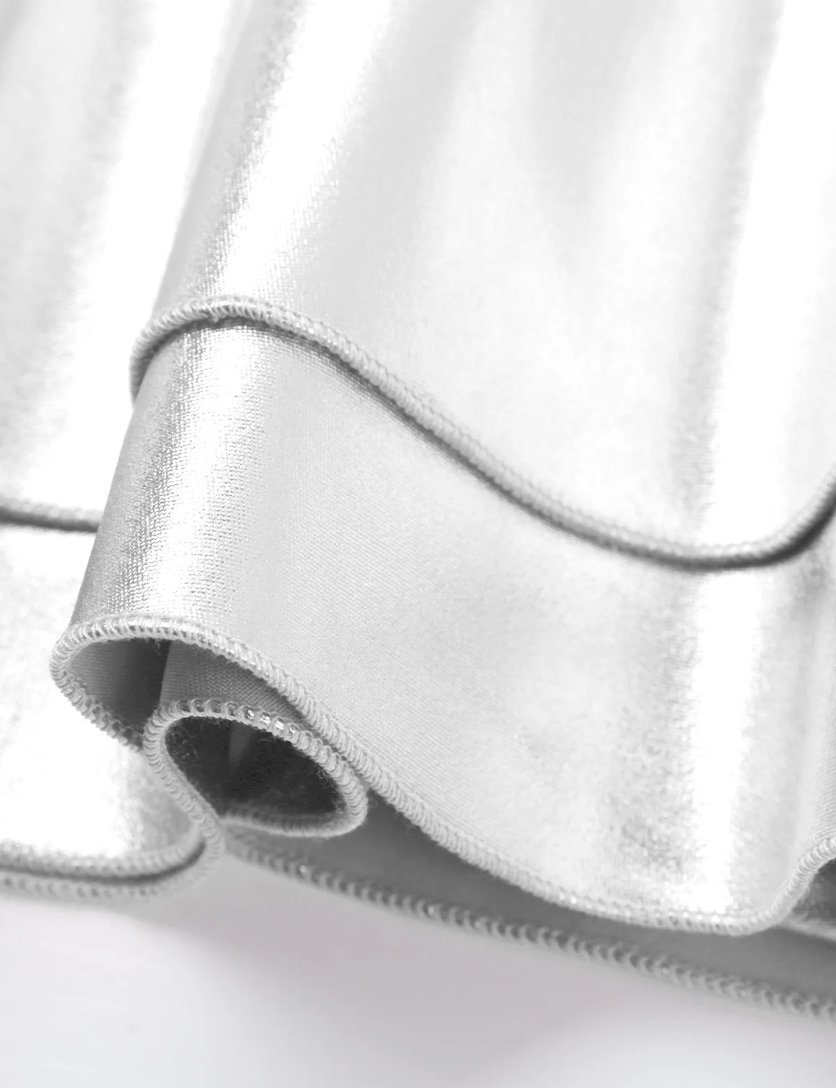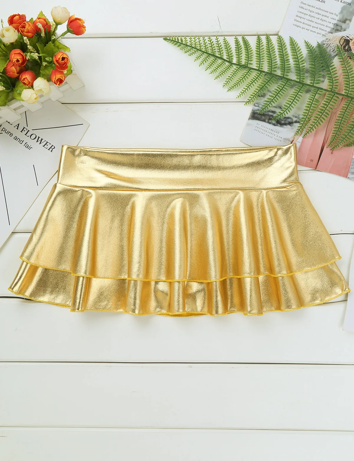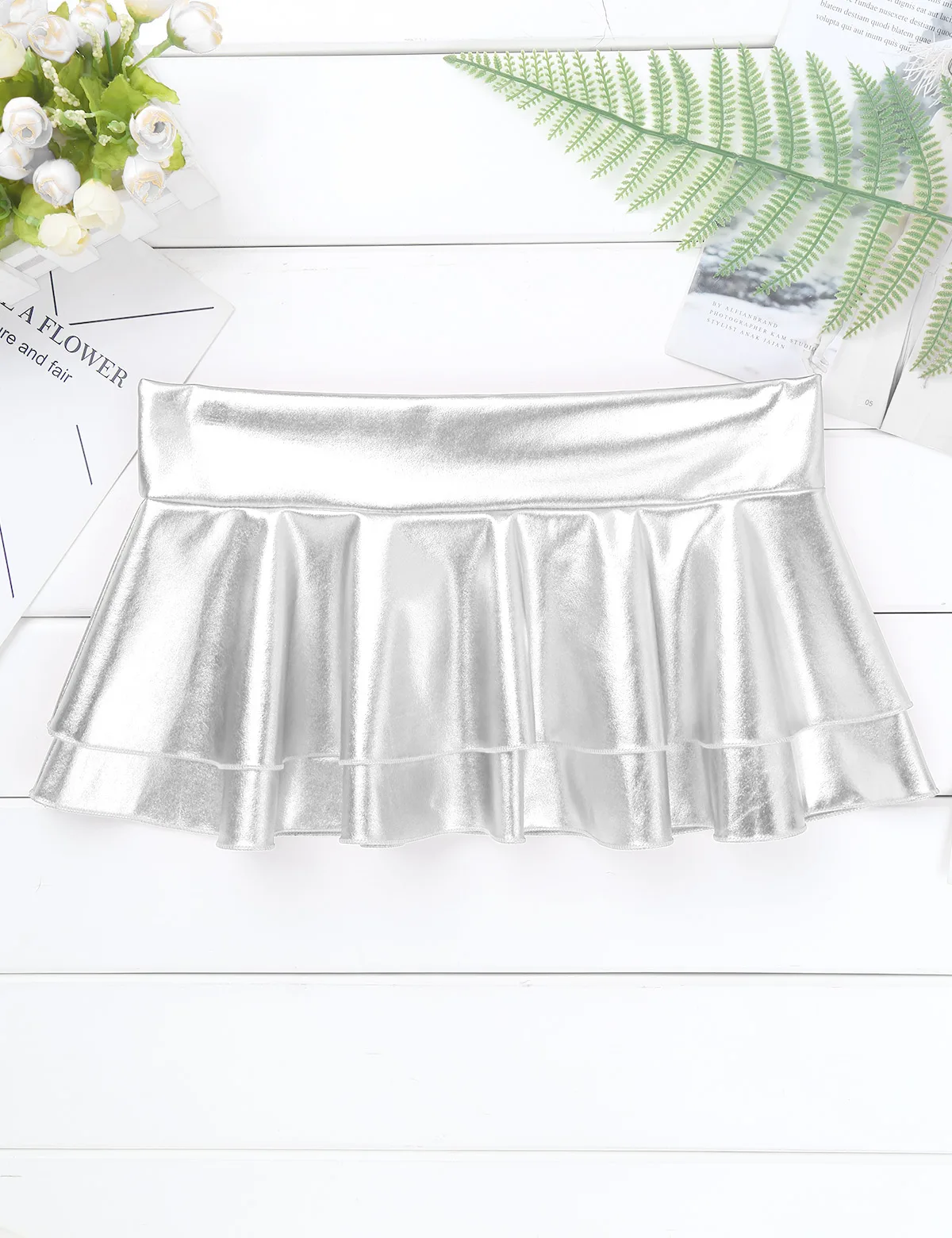 Женские блестящие металлические шорты с низкой посадкой, с оборками, для танцев на Пилоне, кожаные, Клубные, вечерние, танцевальные, праздничные, Пикантные мини-юбки