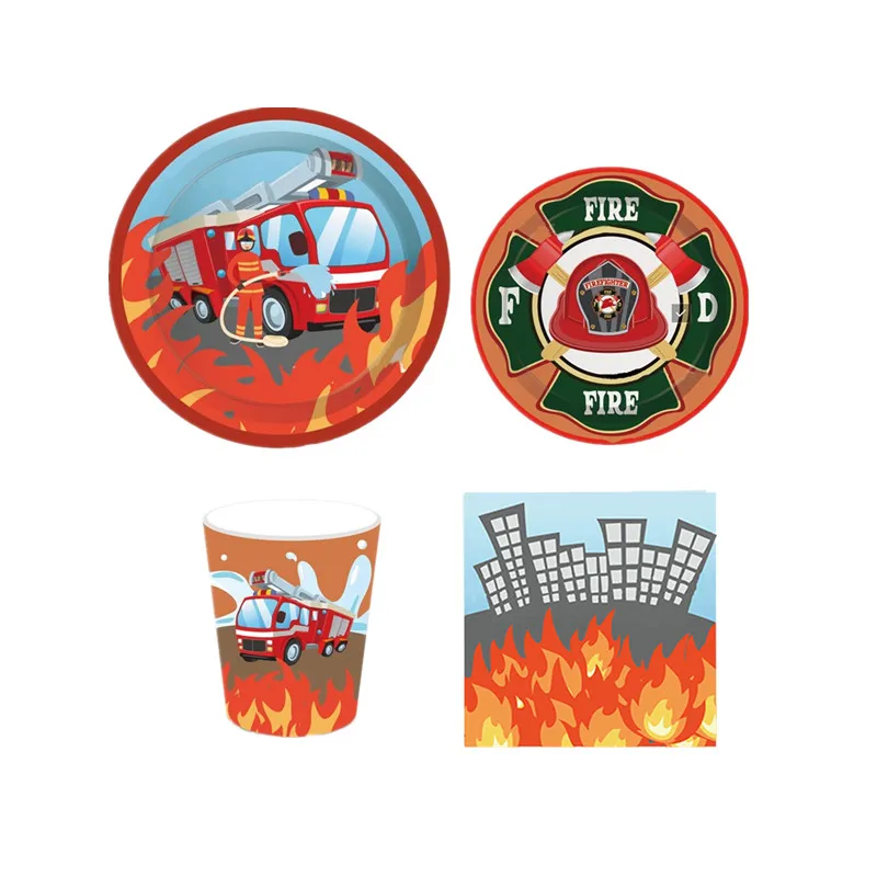 Пожарный тема одноразовая посуда для малышей с изображением пожарно...