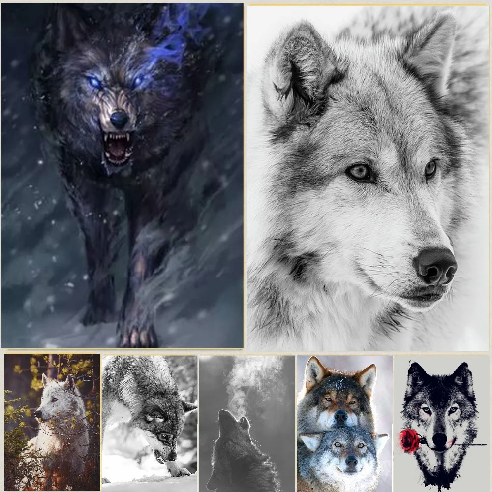 Полностью сдедай сам Diy Daimond живопись 3D Алмазная вышивка полная круглая с животными из стразов красочные дикого волка Diamant Живопись украшения