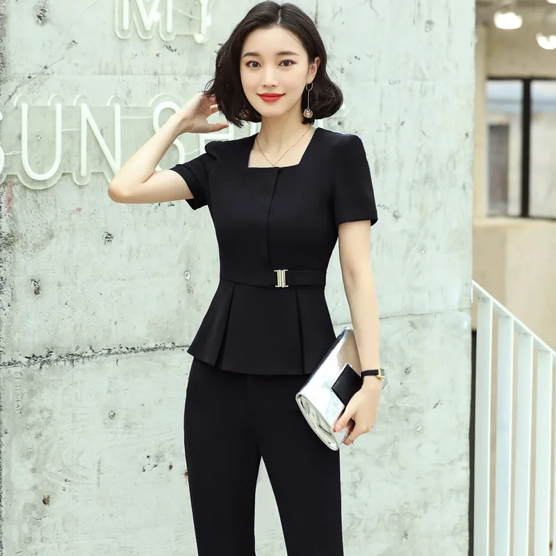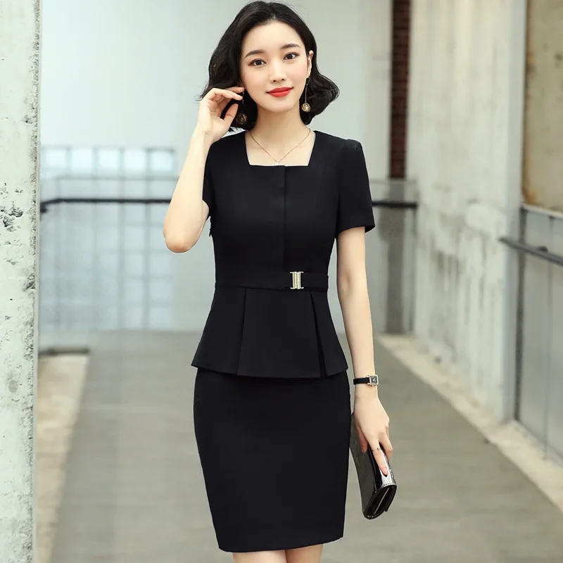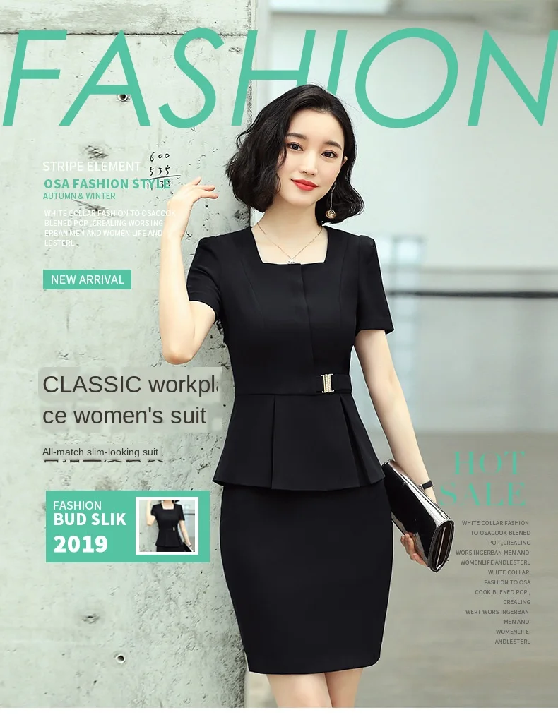 Деловая одежда, женский костюм, летний Блейзер, юбка, облегающий жакет с коротким рукавом, юбка, 2 предмета, офисная одежда для опрошиваемого менеджера