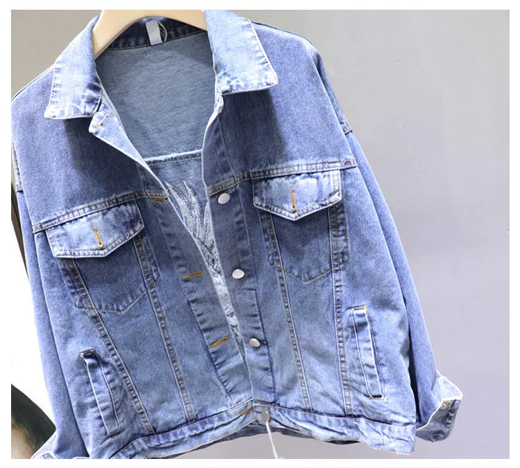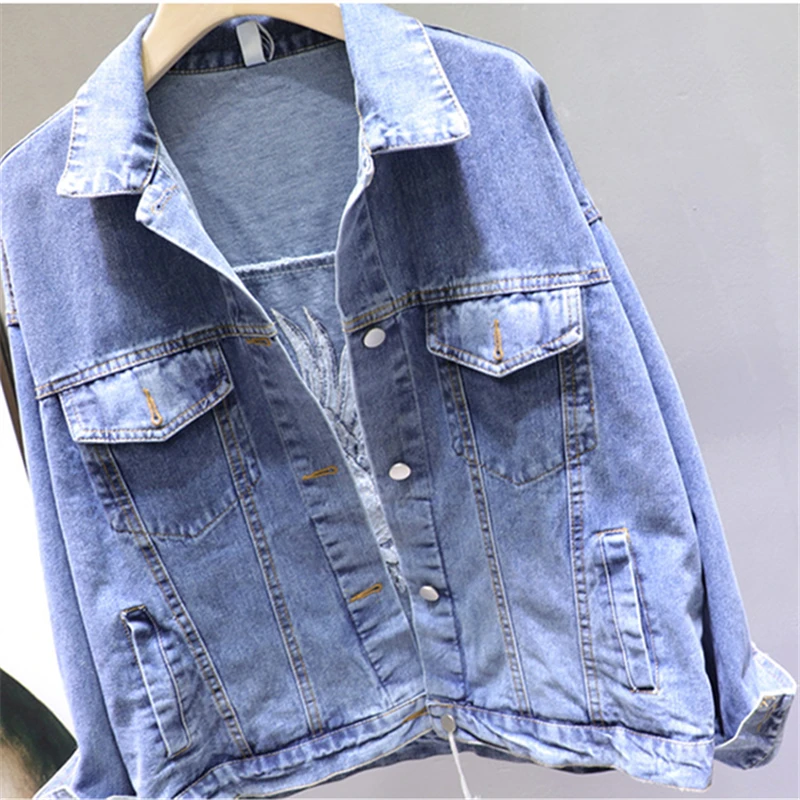 Женская джинсовая куртка с вышивкой в стиле бойфренд
