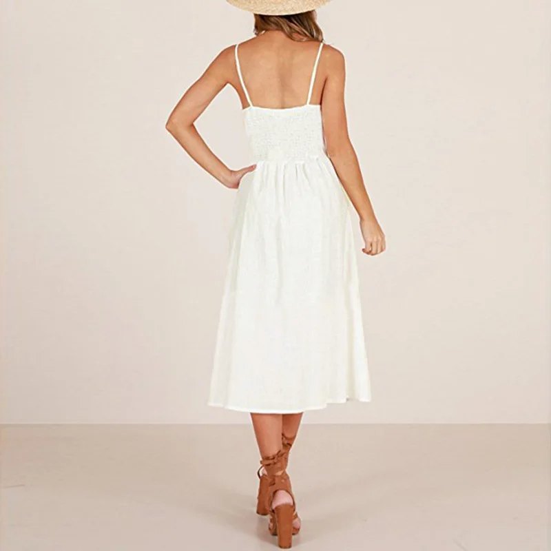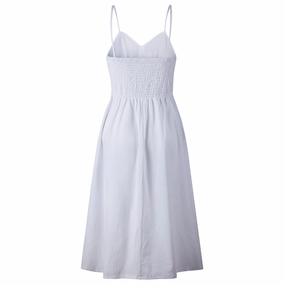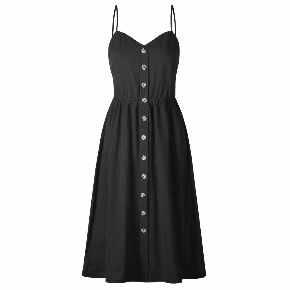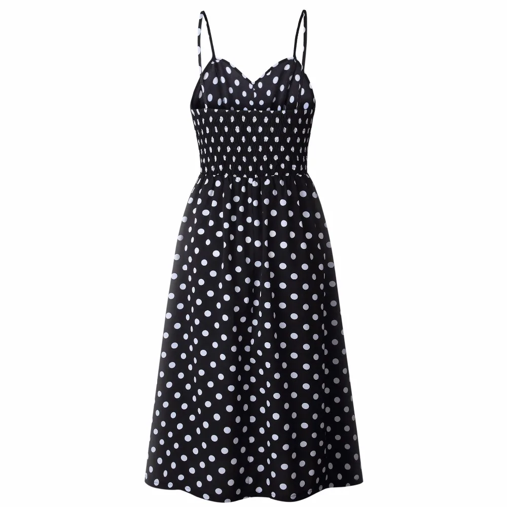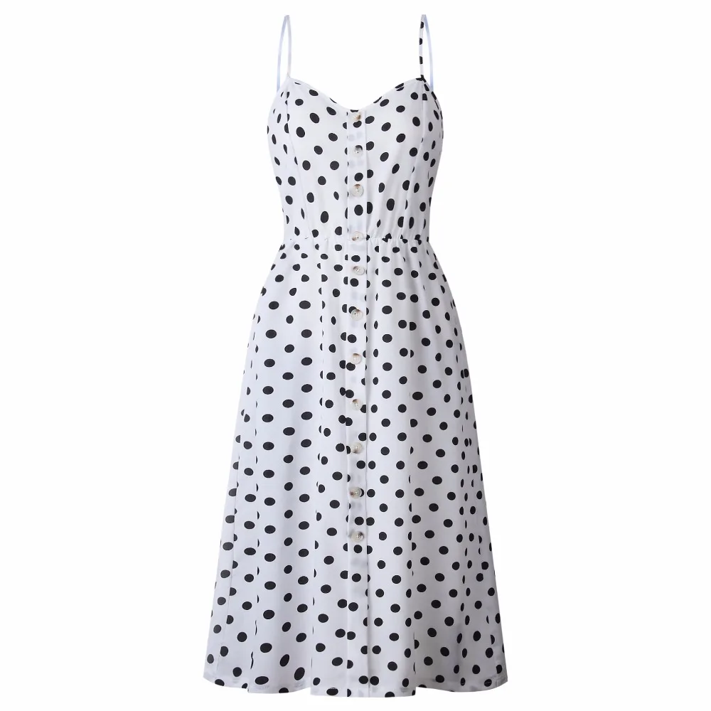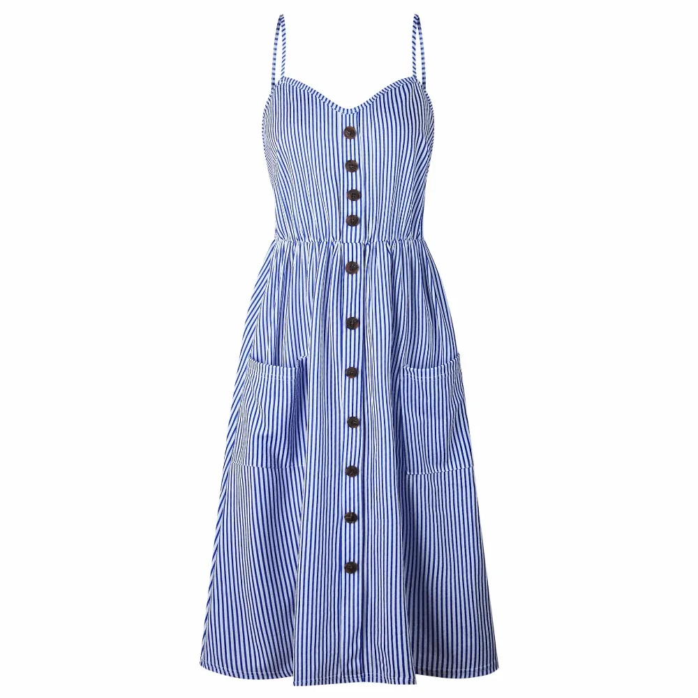 Сарафан женский винтажный повседневный, пляжное платье средней длины на пуговицах, с открытой спиной, в горошек, в полоску, пикантное цветочное, в стиле бохо, на лето