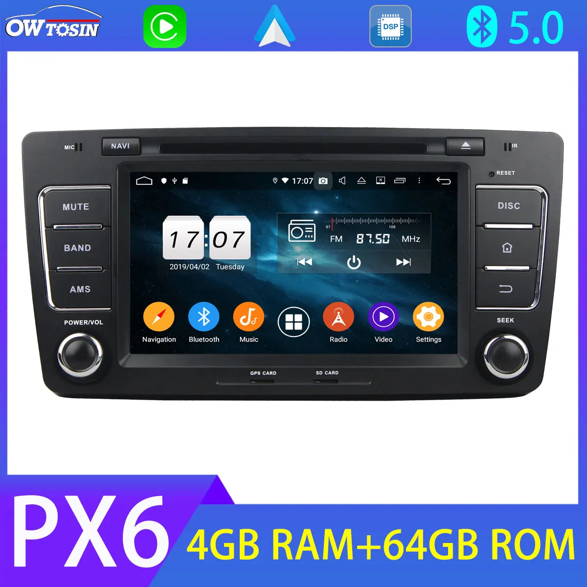 Автомобильный мультимедийный плеер PX6, 4 + 64 ГБ, GPS, навигатор, для Skoda Octavia 2009-2015, Bluetooth 5,0, модем 4G, LTE, DSP, Carplay, Android 10