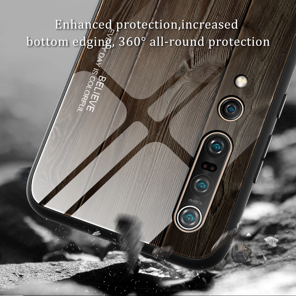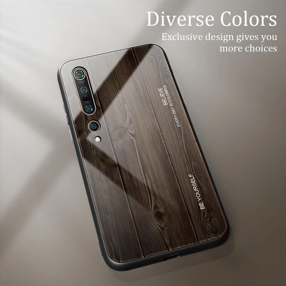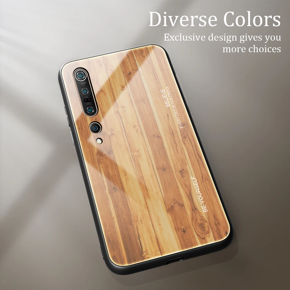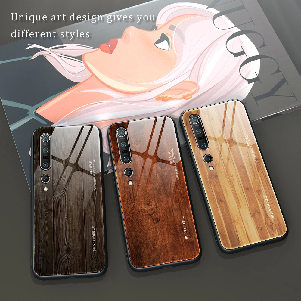 Чехол из закаленного стекла с текстурой древесины для Xiaomi Mi 10 ...