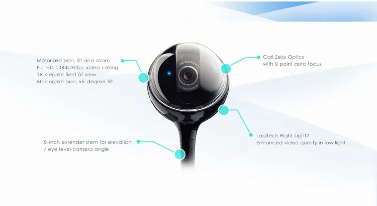 Камера: Видеозвонки Full HD 1080 p (до 1920*1080 пикселей); Видеозвонки 720 p HD (до 1280*720 пикселей) с поддерживаемыми клиентами 78 ° Поле зрения с автофокусом 1.2x HD с переменным фокусным расстоянием 228 мм Удлинительный стержень для высоты/угла обзора камеры Правильный светильник 2 технология для ясности в различных условиях светильник ing, даже низкий светильник Светодиодный индикатор для активной потоковой индикации камеры Громкая связь: Встроенный полнодуплексный громкоговоритель с эхо и шумоподавлением Управление для ответа на вызов/окончания, громкости, отключения звука и движения камеры Микрофон (Tx): Всенаправленный микрофон с 2,4 м диапазон диаметров Частотная характеристика: 200 Гц-8 кГц Пульт дистанционного управления: ИК 3 м Диапазон Аккумулятор CR2032 (включая) Ленточные кабели/мощность: AC Мощность адаптер Мощность кабель (2,4 м) USB кабель (2,4 м)