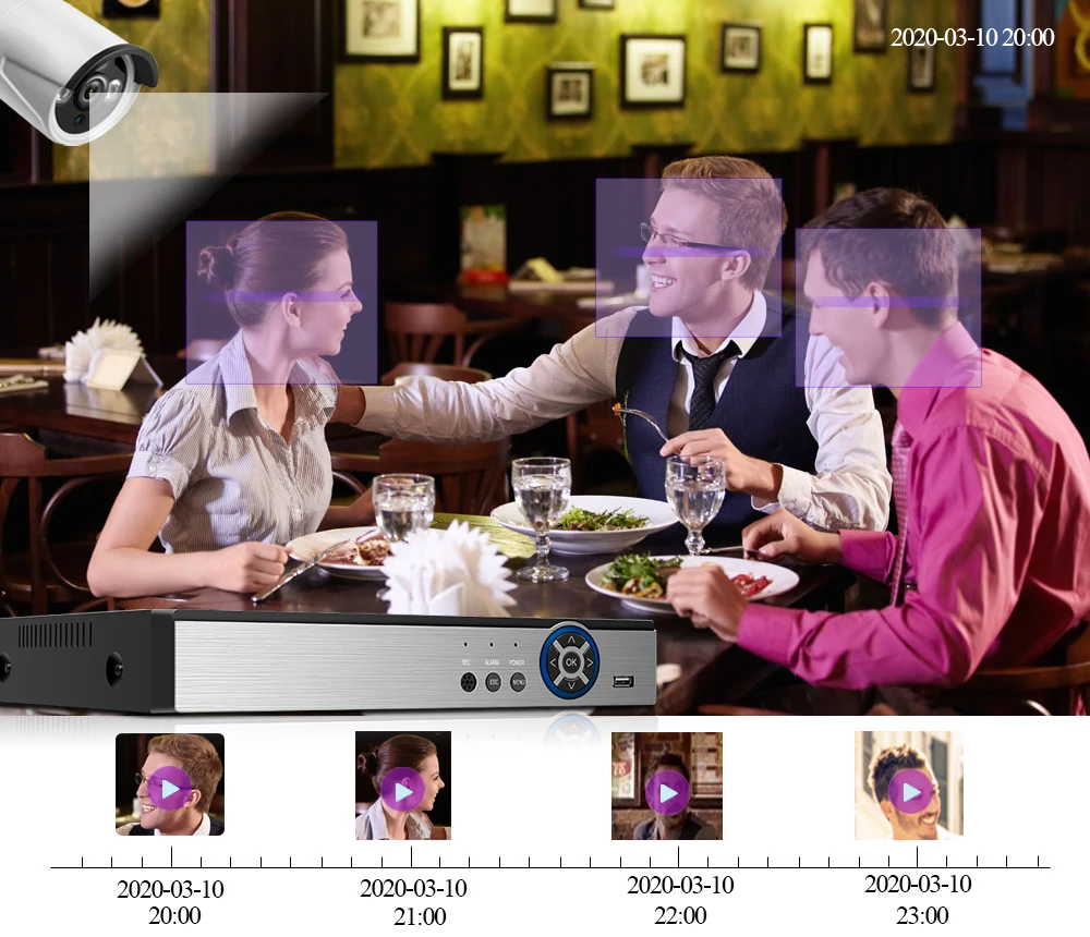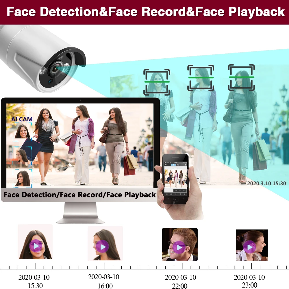 3. Наш NVR и камера поддерживают распознавание лица, воспроизведение лица, обеспечивает ультра высокое разрешение видео наблюдения, обеспечивая максимальную детализацию и четкость доступны;