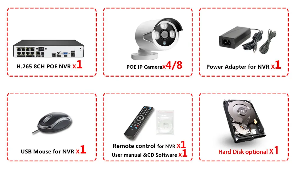 4. Наш NVR и камеры поддерживают расширенное H.265 Сжатие видео, питание через Ethernet, подключи и работай, прост в использовании;