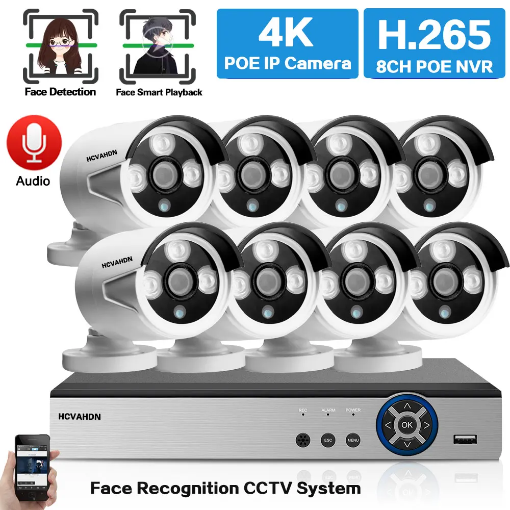 H.265 + 4CH 8CH 5MP POE Система безопасности NVR комплект аудио IP камера ИК Открытый IP66 распознавание лица CCTV видео наблюдение NVR набор
